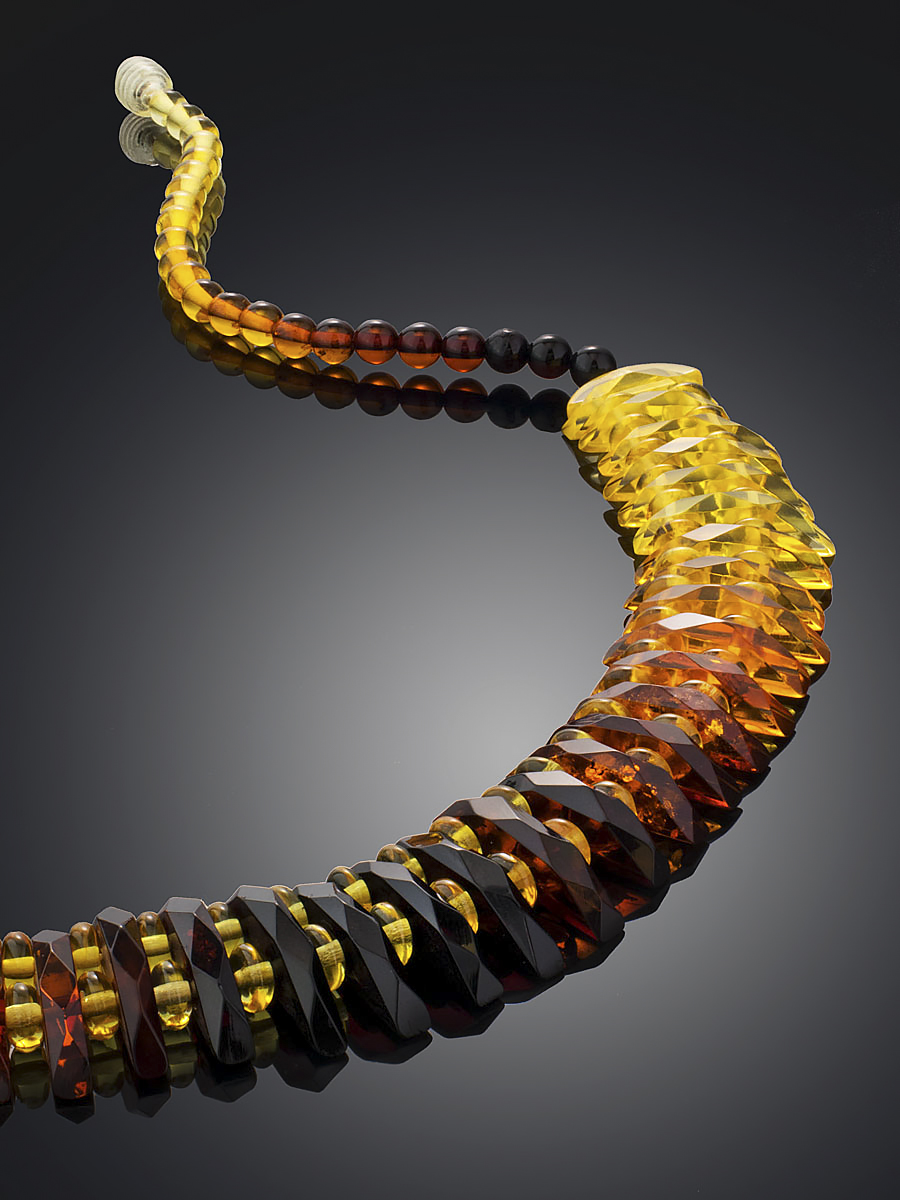 Оригинальное колье из натурального балтийского янтаря «Мандарин тонированный алмазный»