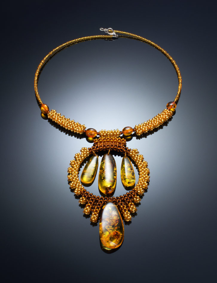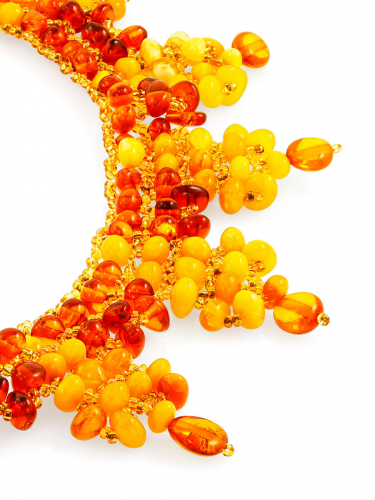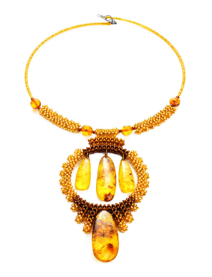 Оригинальное колье на струне из бисера и натурального янтаря «Лукоморье»