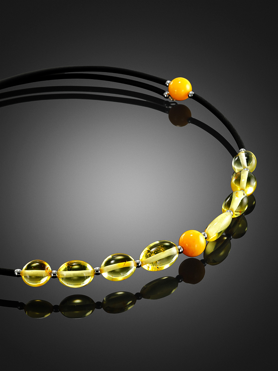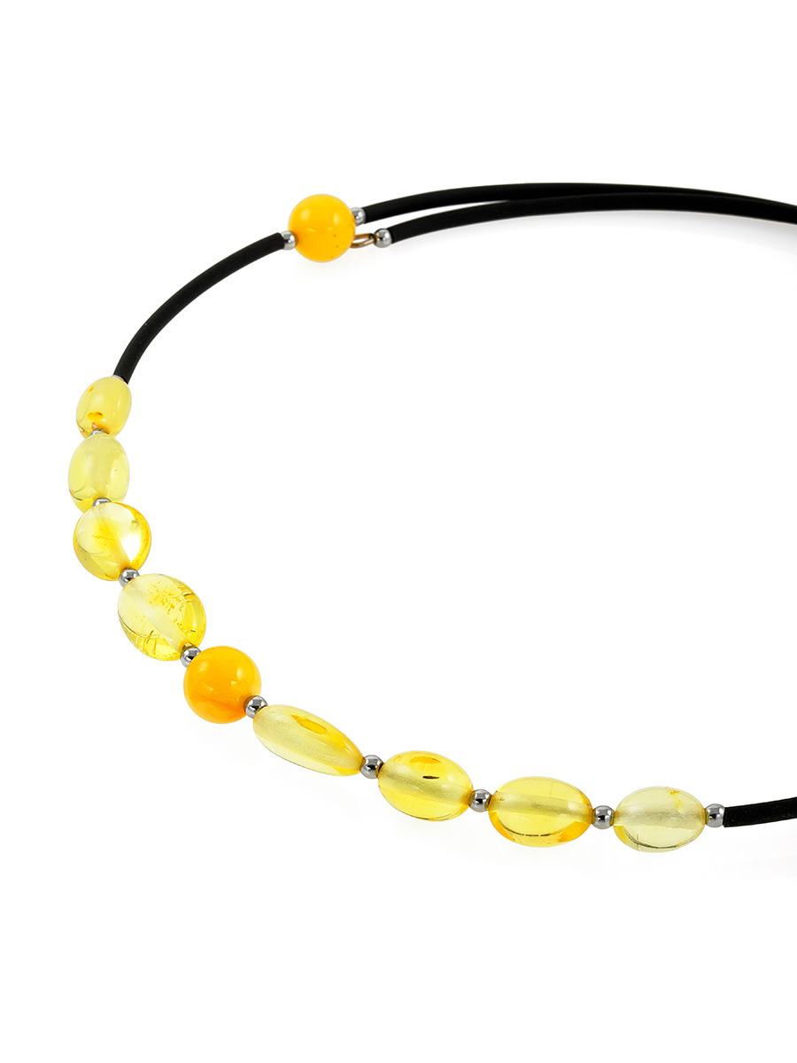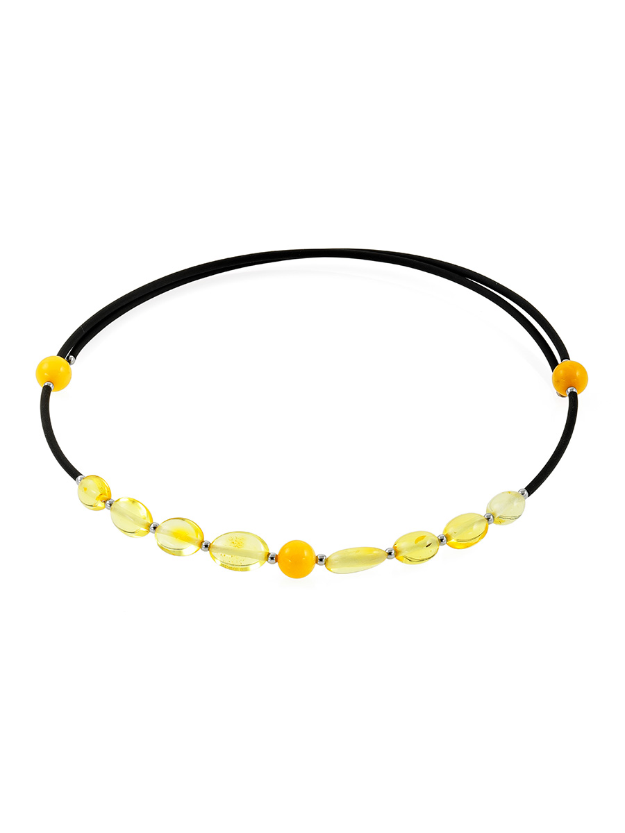 Оригинальное колье-обруч «Оклахома» с янтарём тёплых оттенков