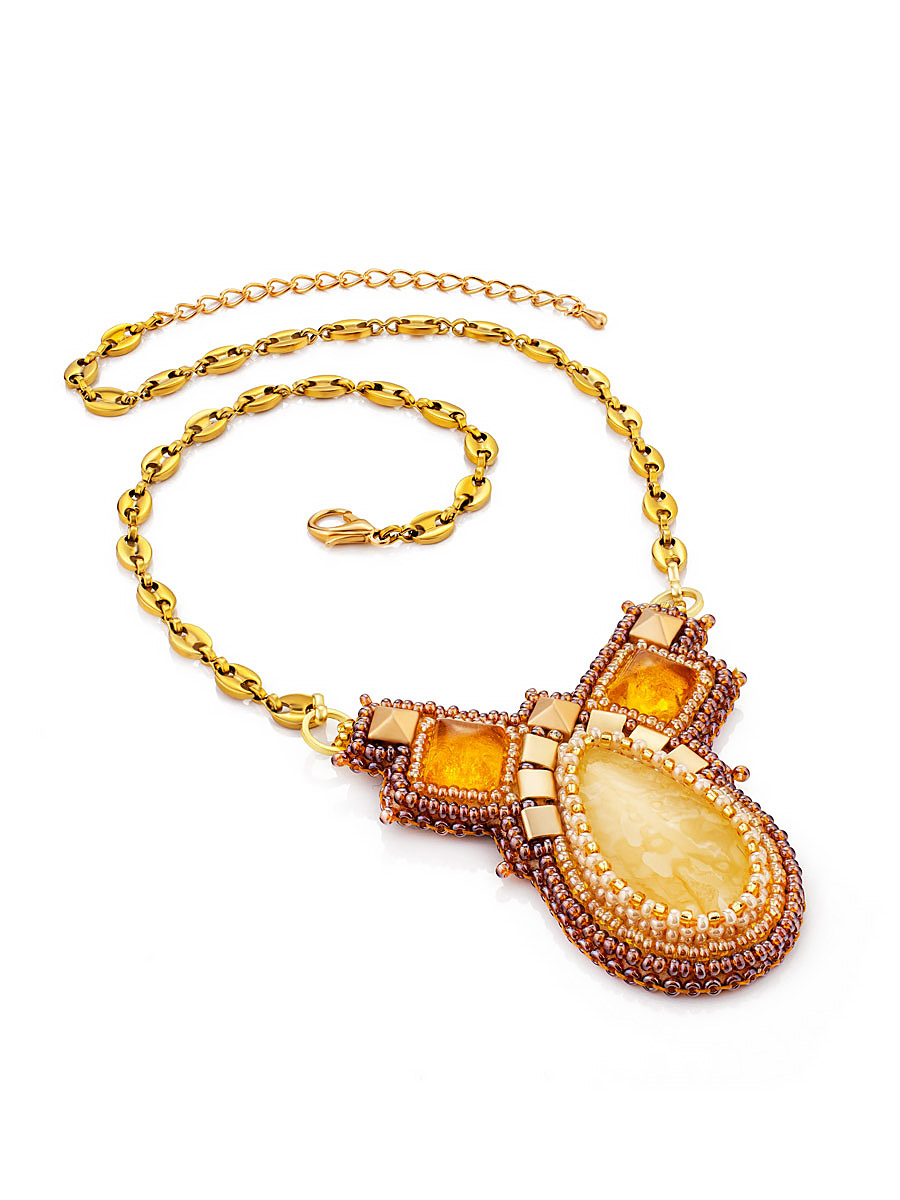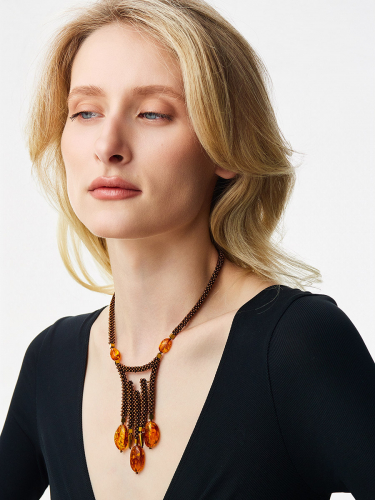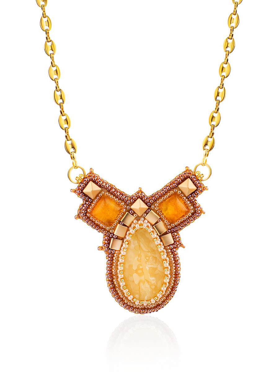 Оригинальное короткое колье из натурального янтаря и бисера «Лукоморье»
