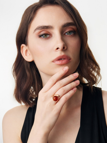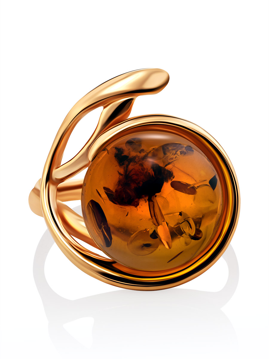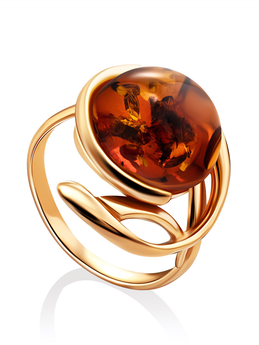 Оригинальное крупное золочённое кольцо с коньячным янтарём «Феникс»