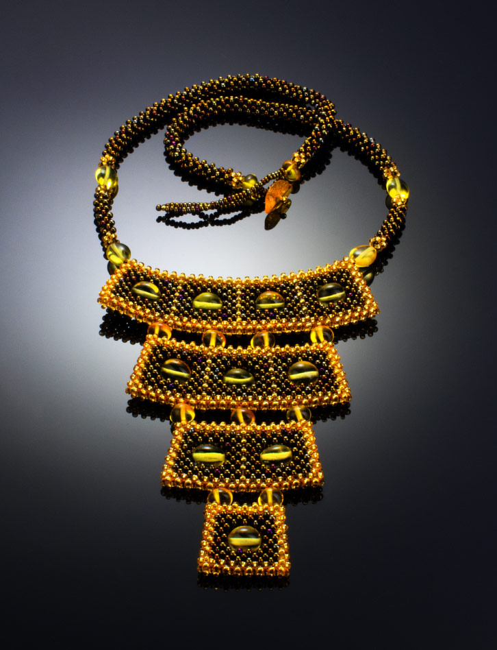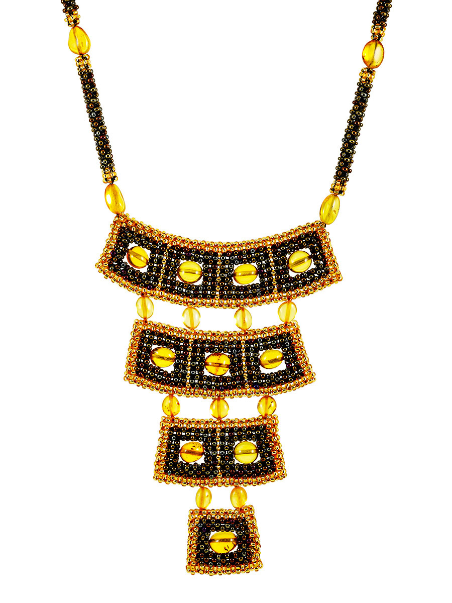 Оригинальное стильное колье из бисера и янтаря «Лукоморье»