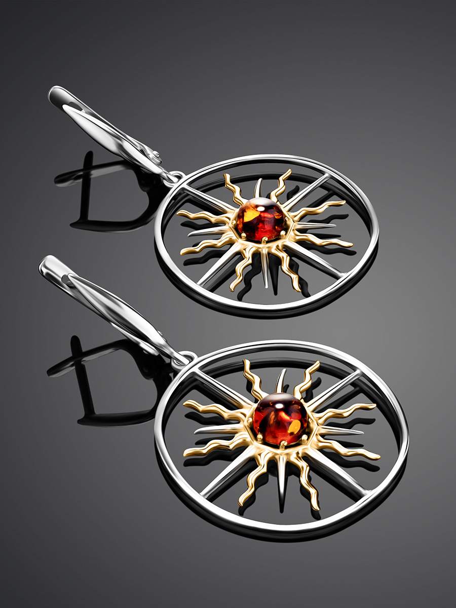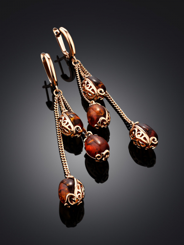 Оригинальные крупные серьги «Алхимия» с коньячным янтарём