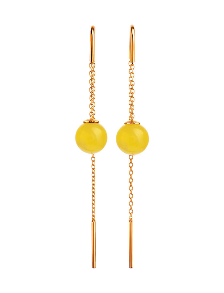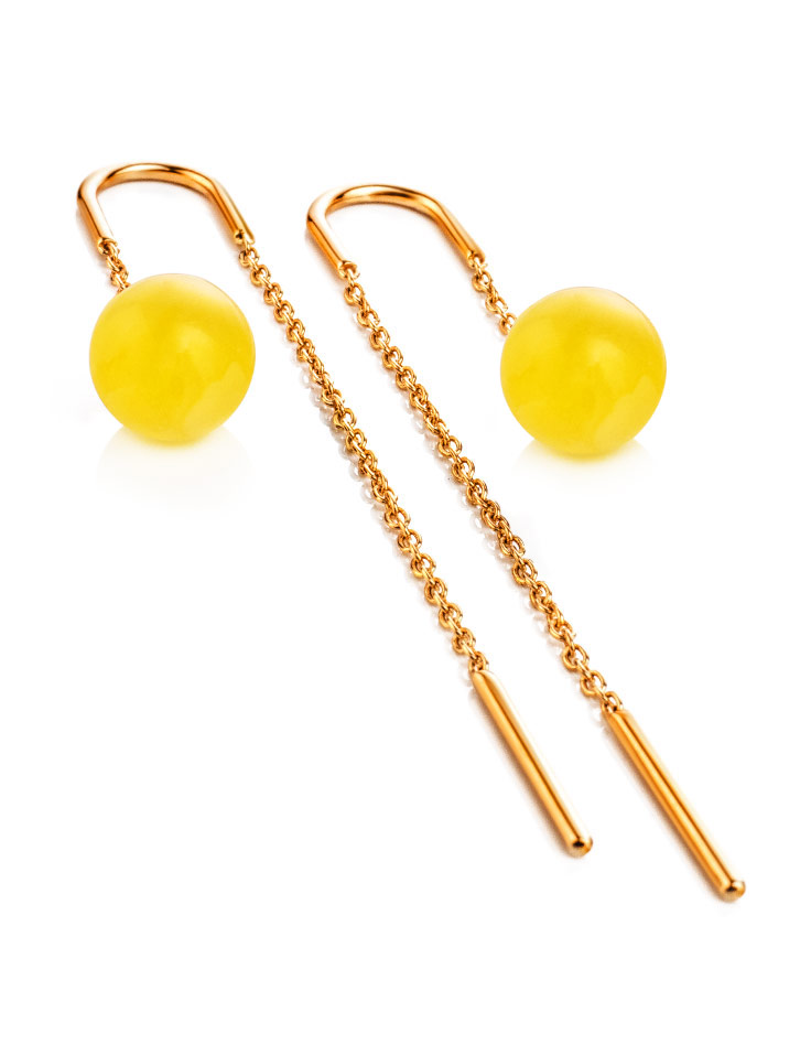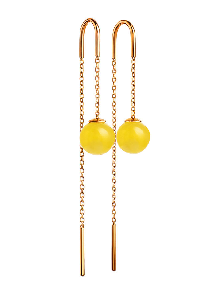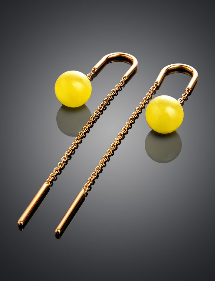 Оригинальные продевные серьги с медовым янтарём «Юпитер»