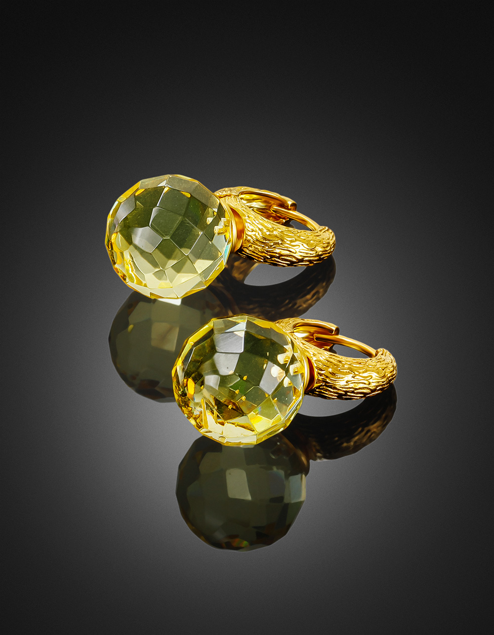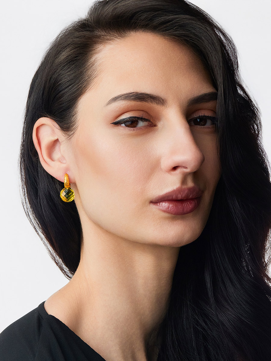 Оригинальные серьги «Баккара» с гранёным лимонным янтарём