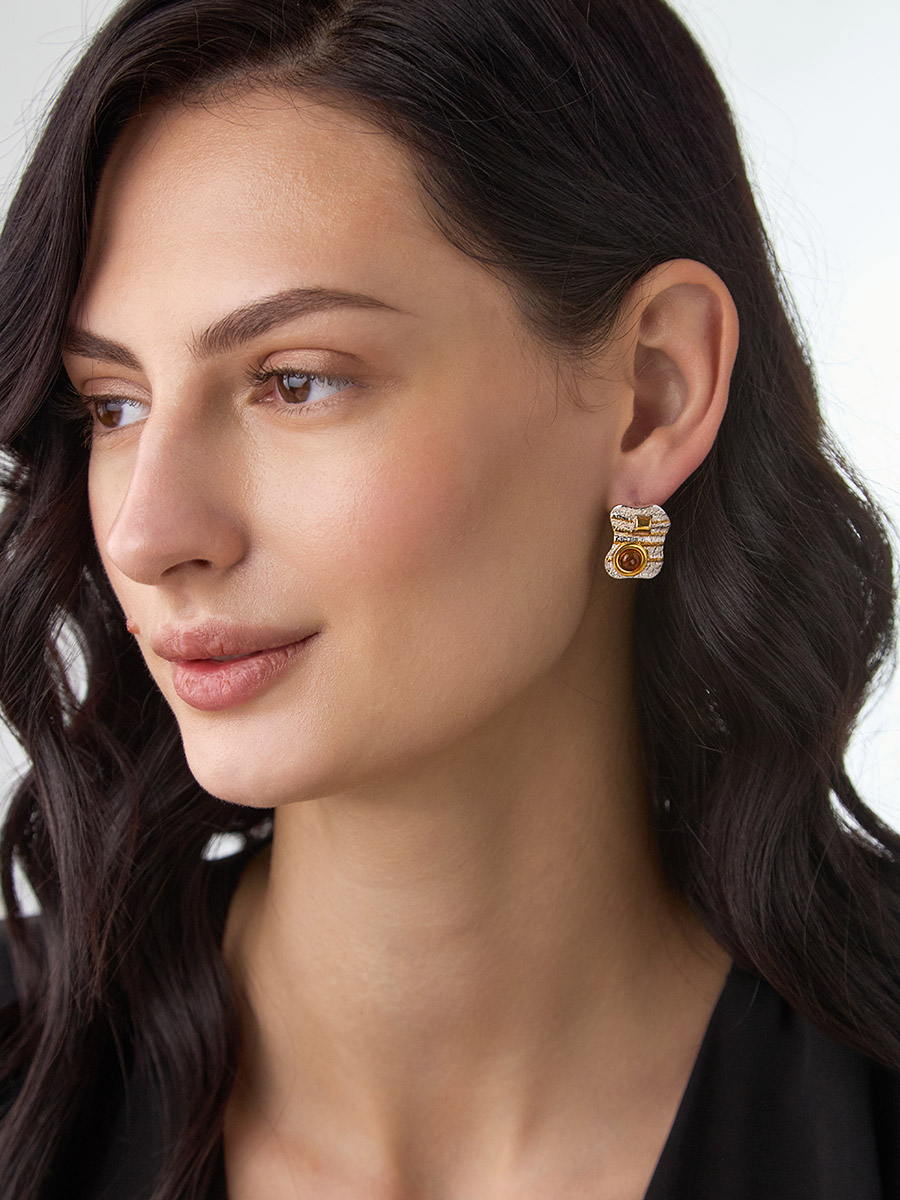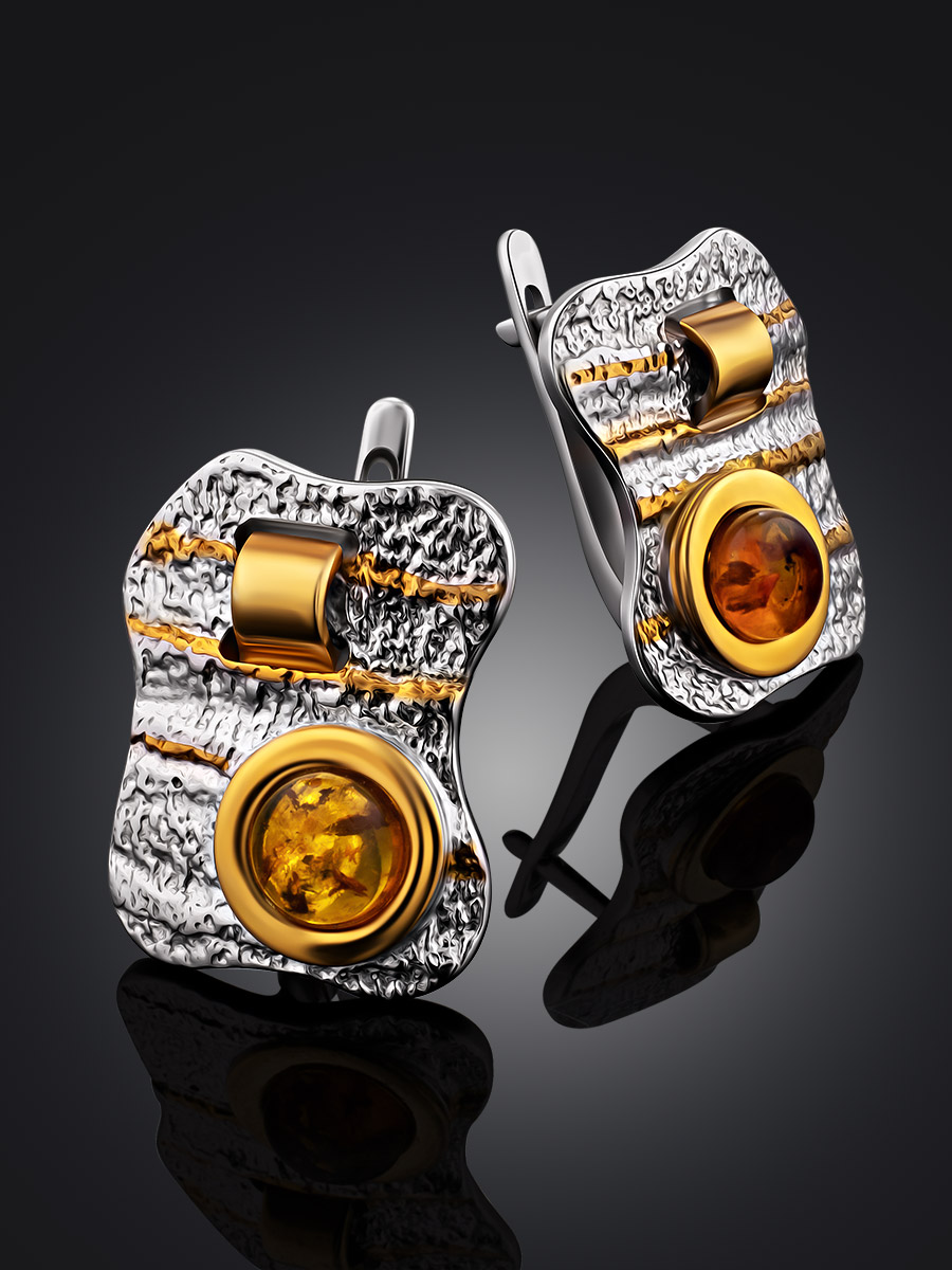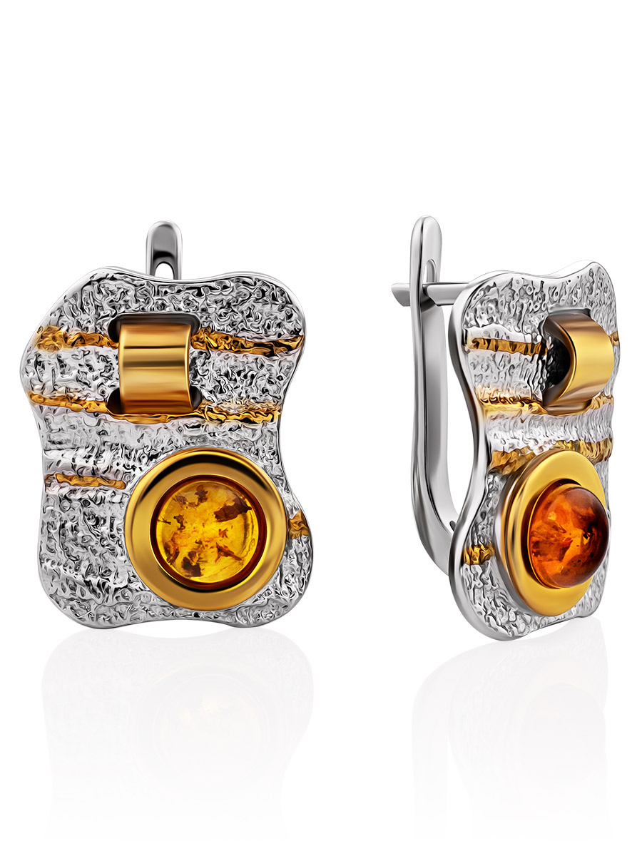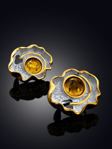 Оригинальные серьги «Бубинга» с золотистым янтарём