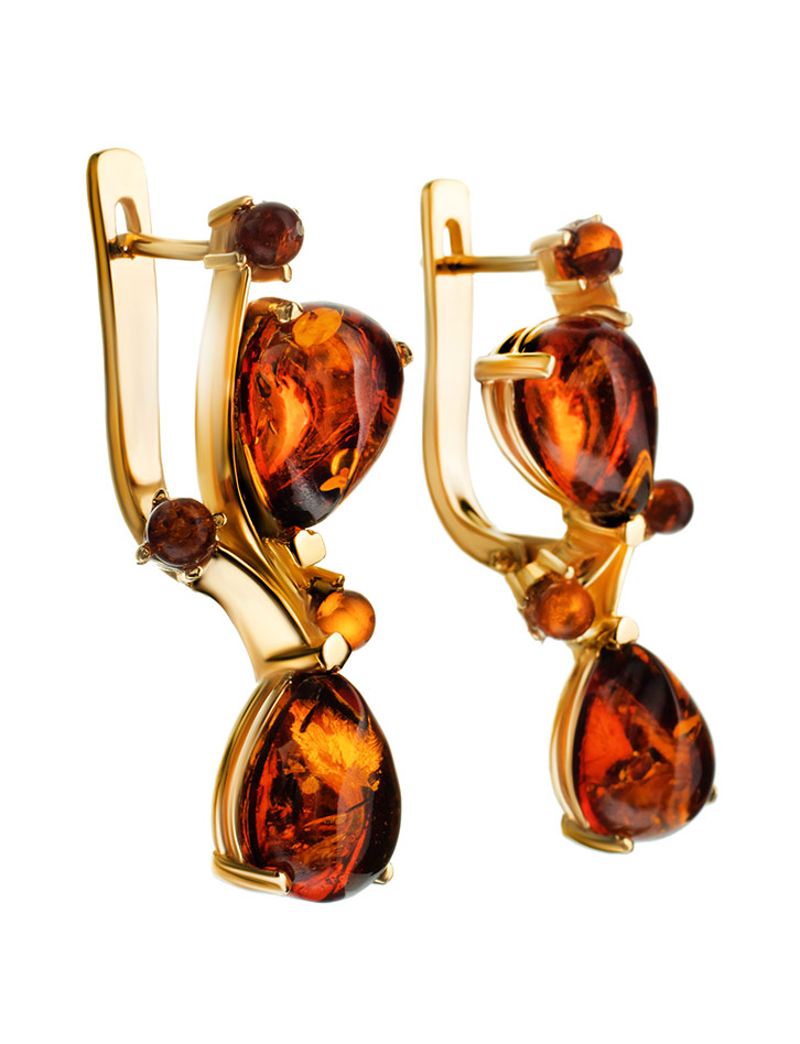 Оригинальные серьги «Эврика» с коньячным янтарём