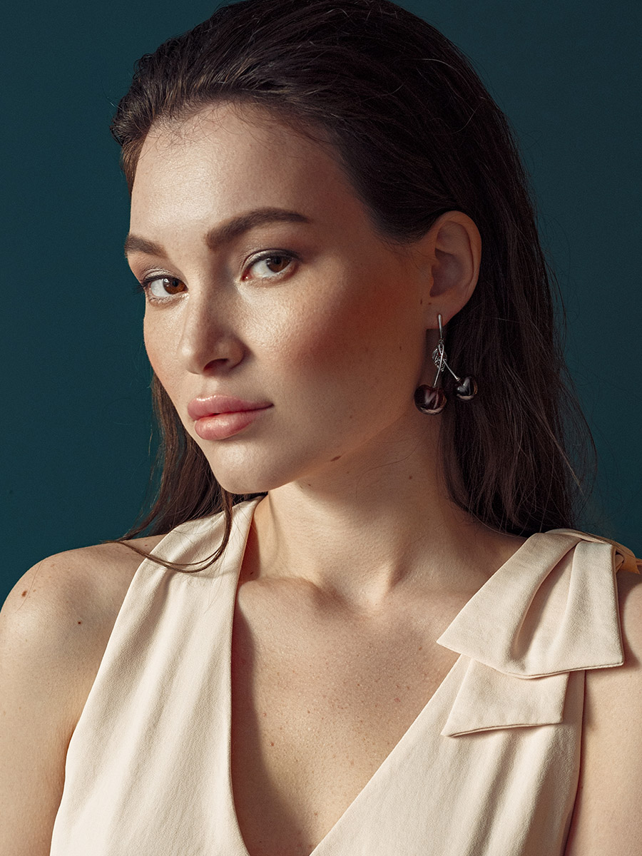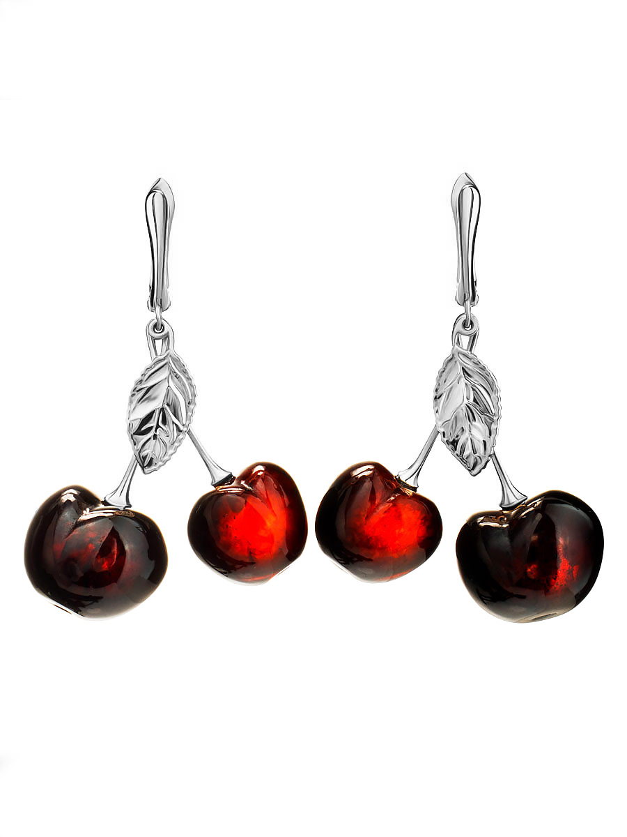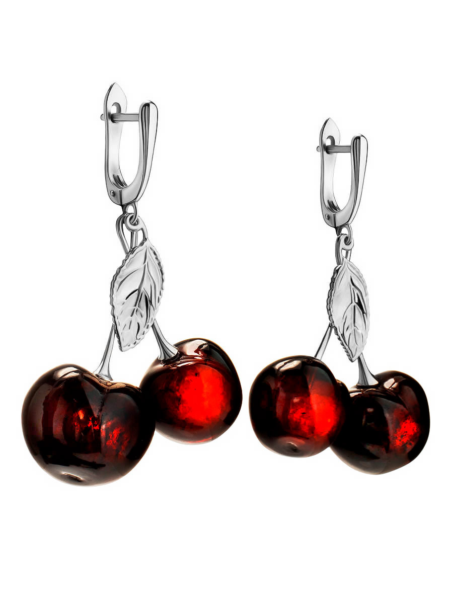 Оригинальные серьги из вишнёвого янтаря «Вишенка»