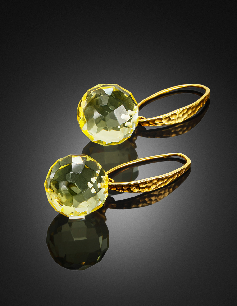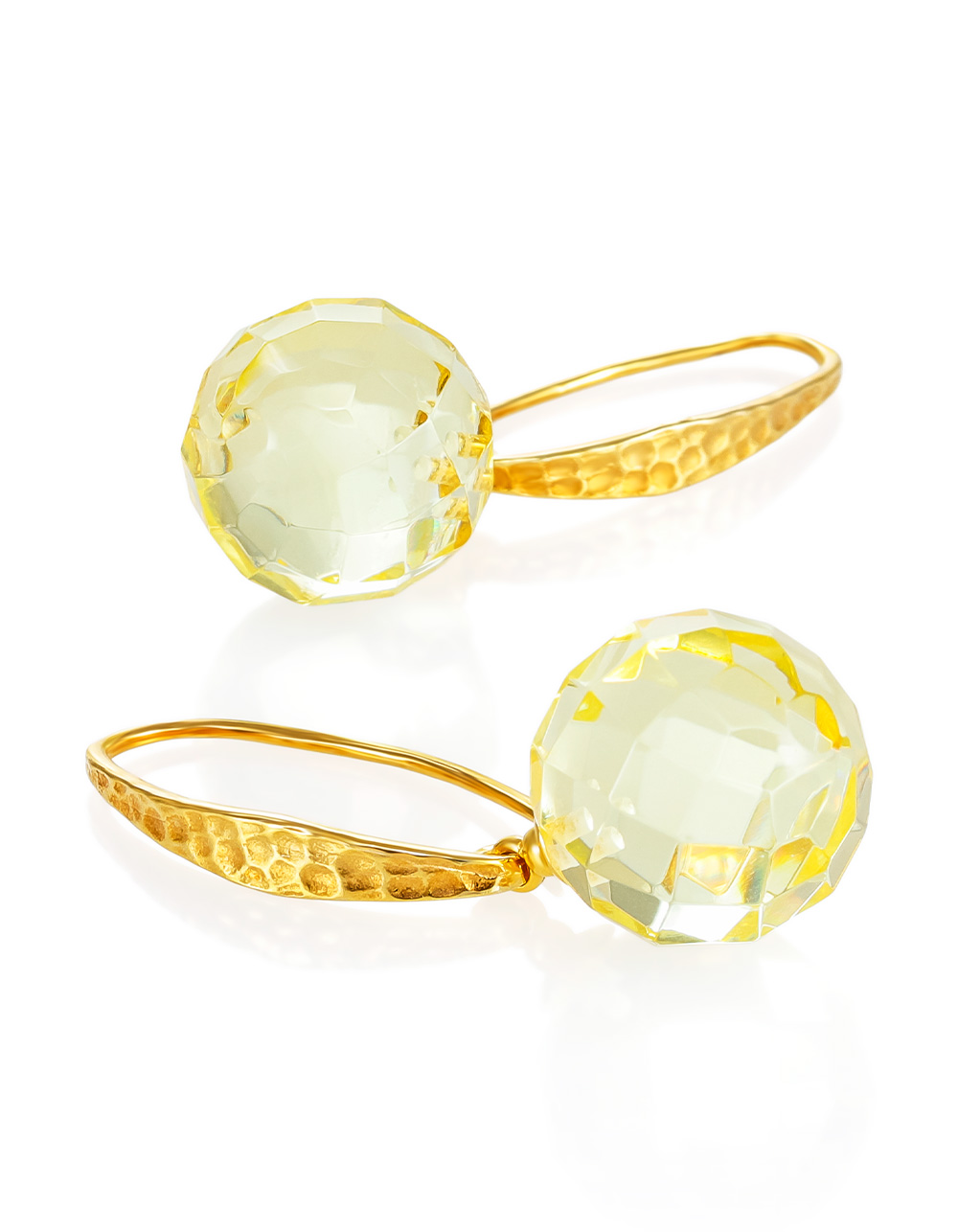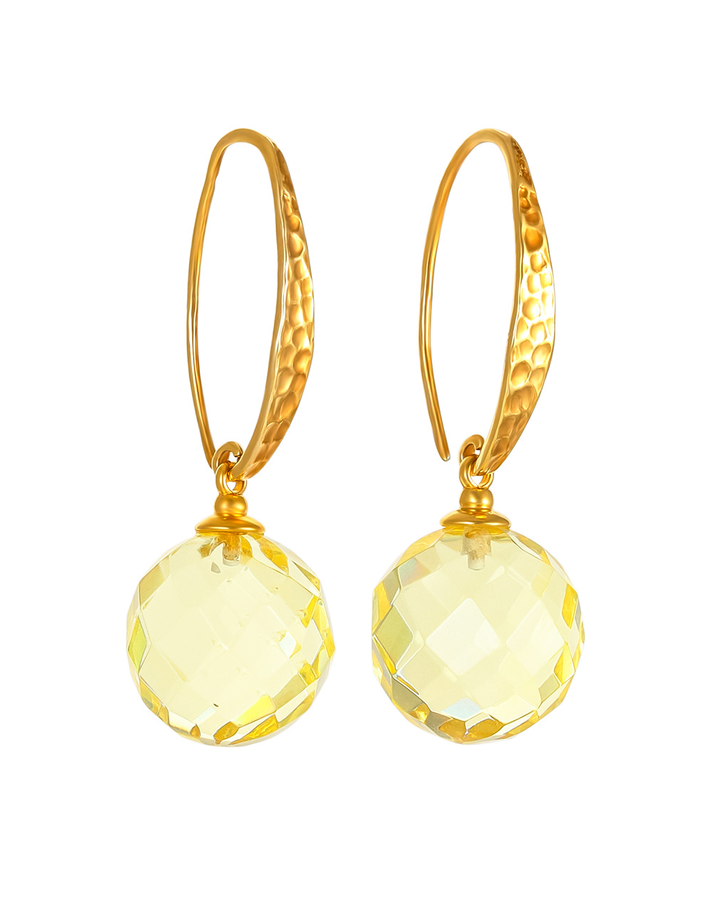 Оригинальные серьги-крючки с гранёными подвесками-шариками из янтаря «Баккара»