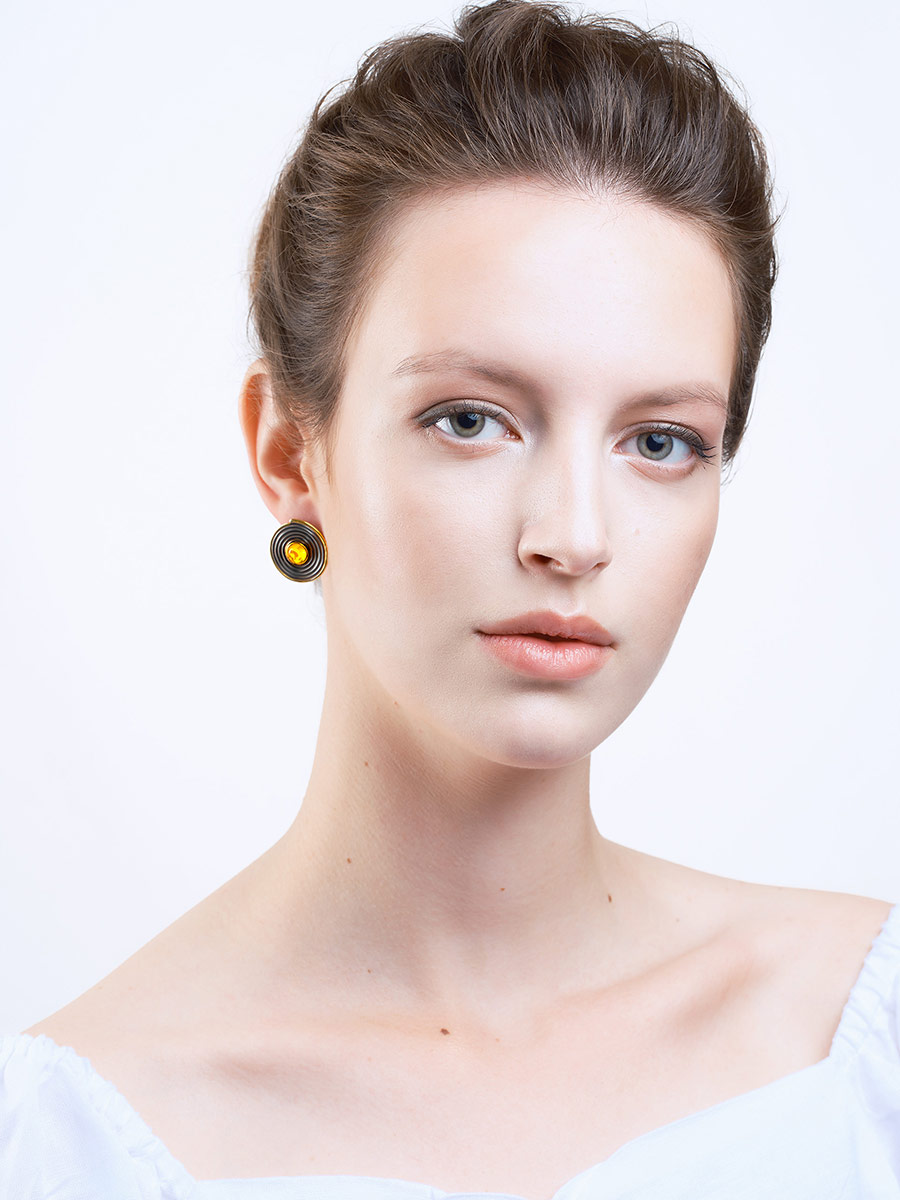Оригинальные серьги «Лагос» в винтажном дизайне из янтаря