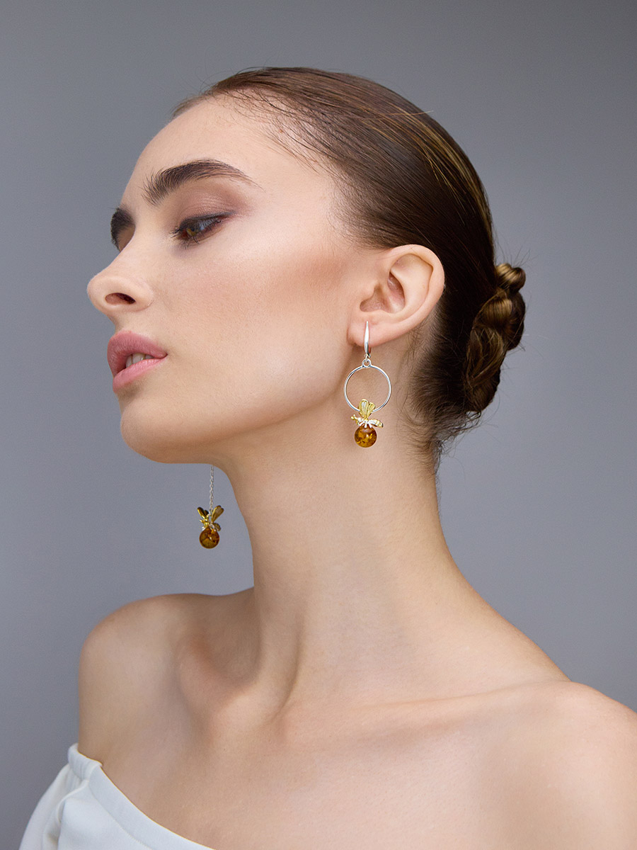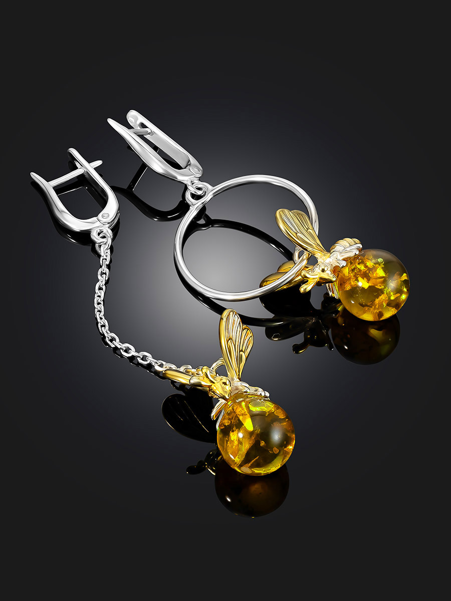Оригинальные серьги с натуральным янтарём лимонного цвета «Винни Пух»