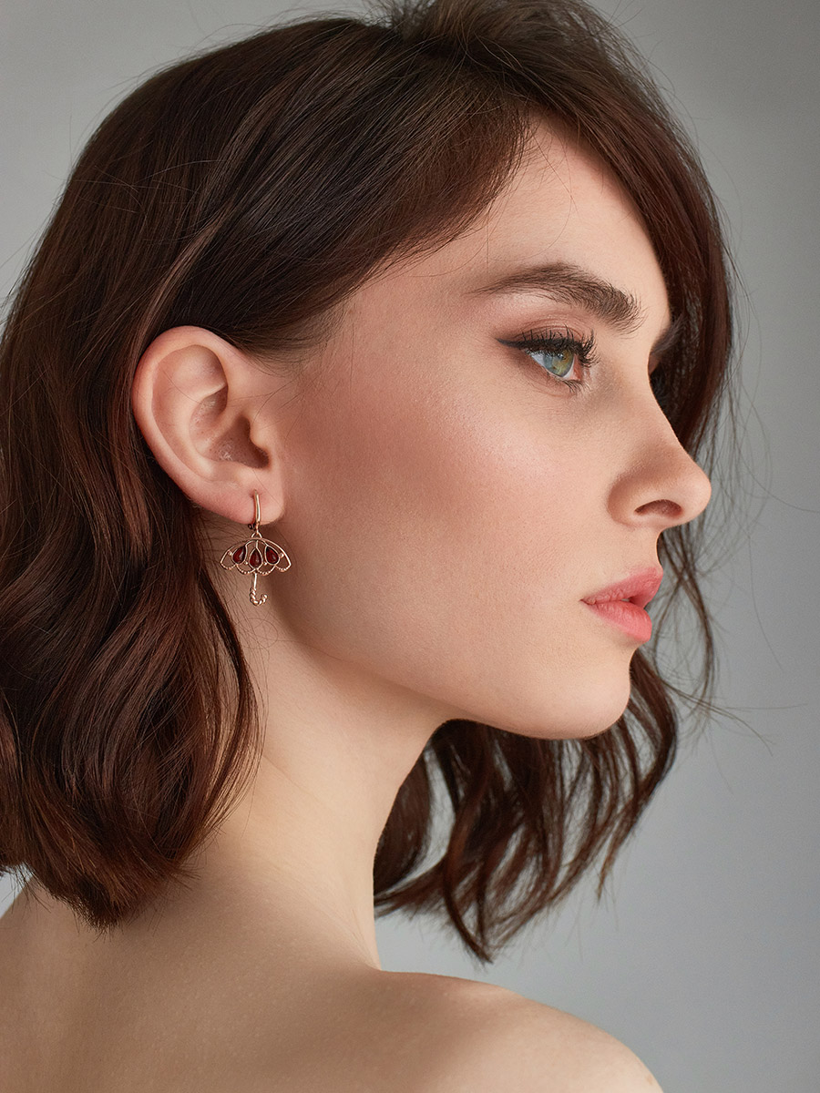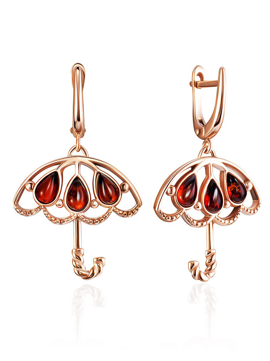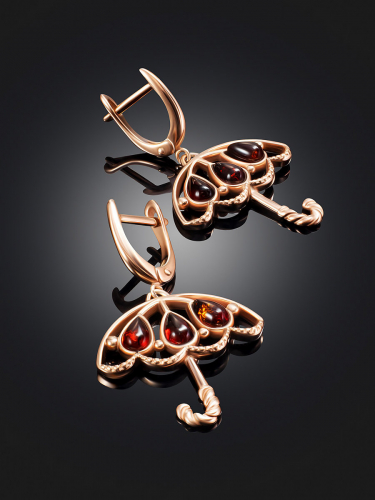 Оригинальные серьги со вставками из вишнёвого янтаря «Зонтик»