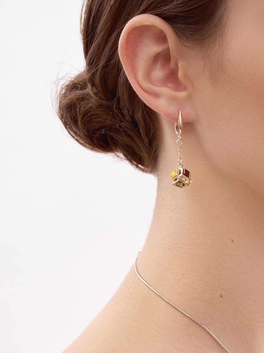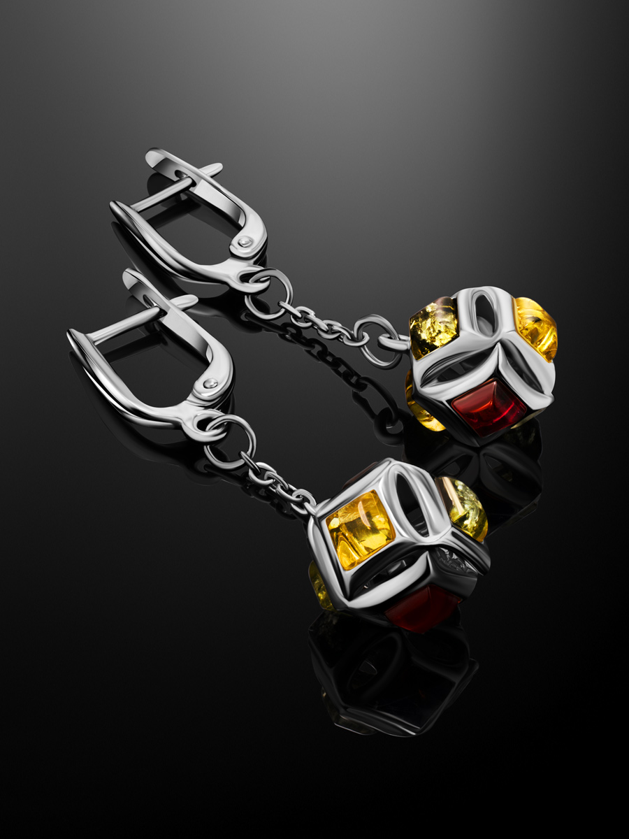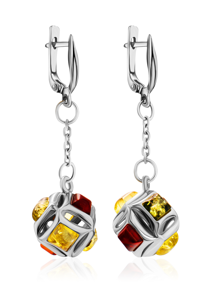Оригинальные серьги «Вернисаж» с янтарём разных оттенков