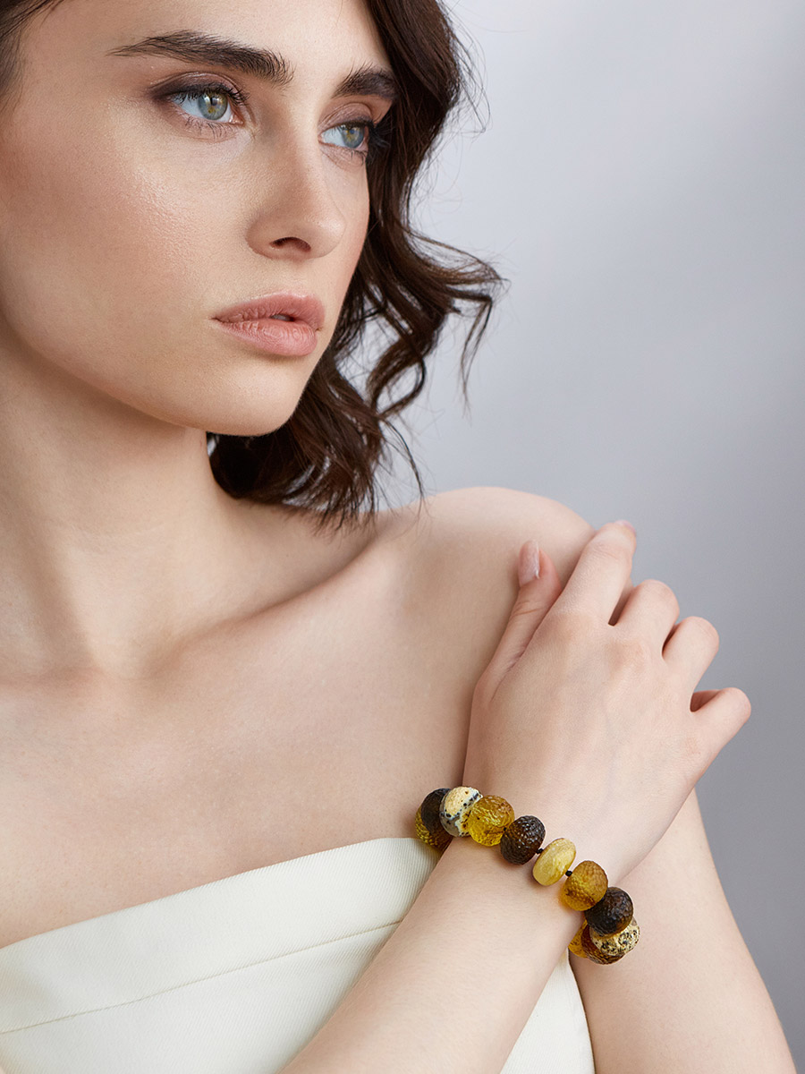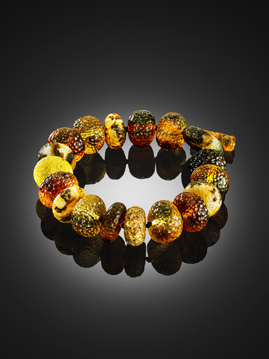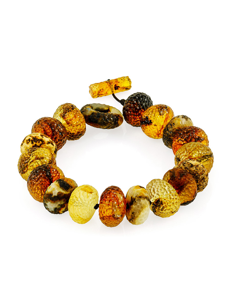 Оригинальный браслет из цельных кусочков «кусаного» янтаря «Марс»