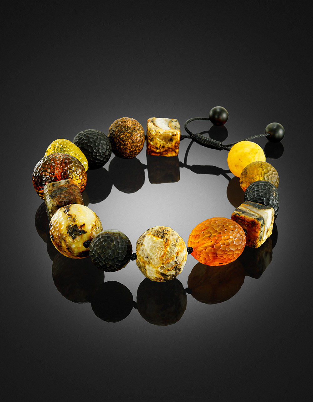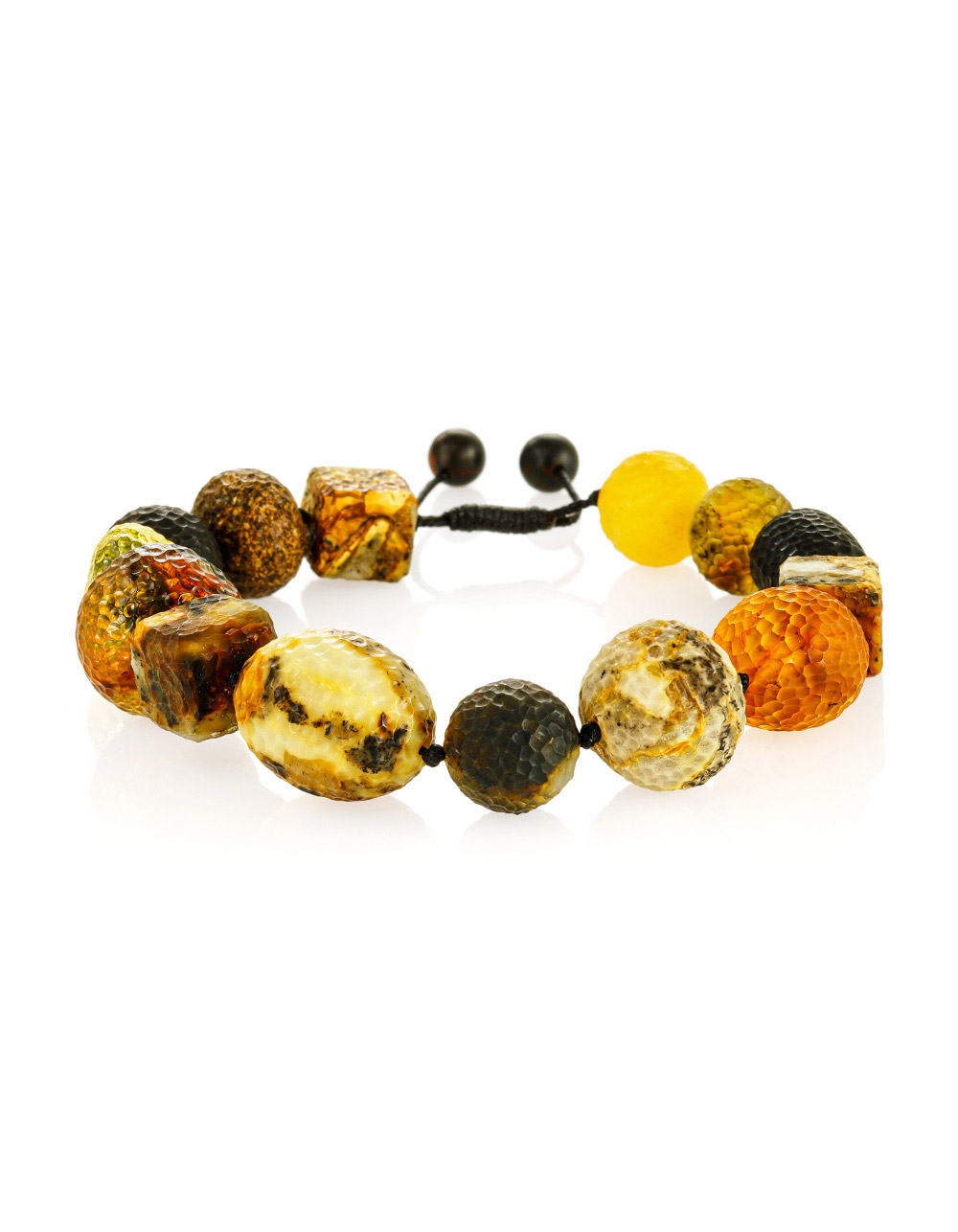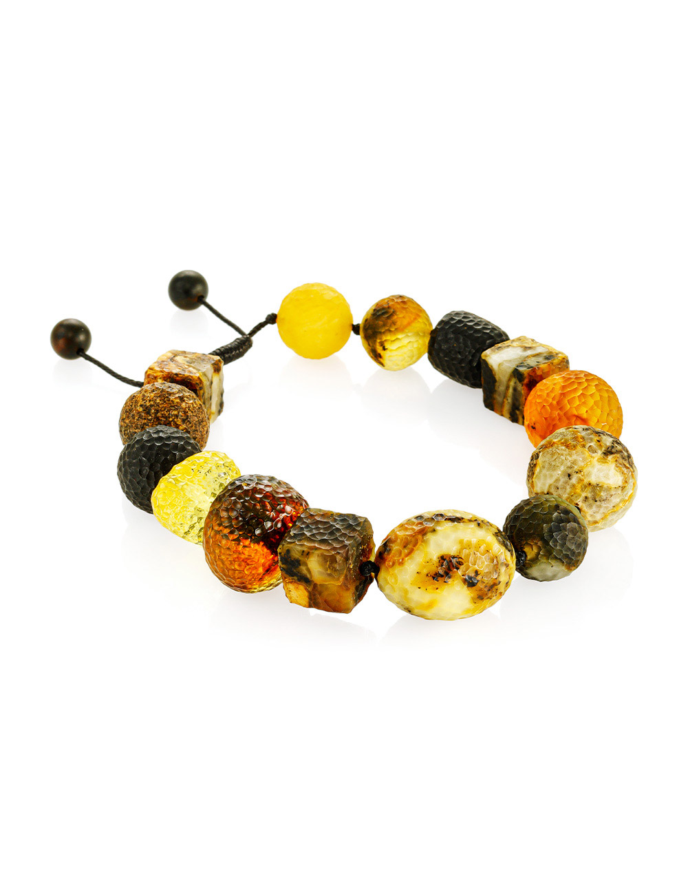 Оригинальный браслет из кусочков «кусаного» янтаря «Марс»