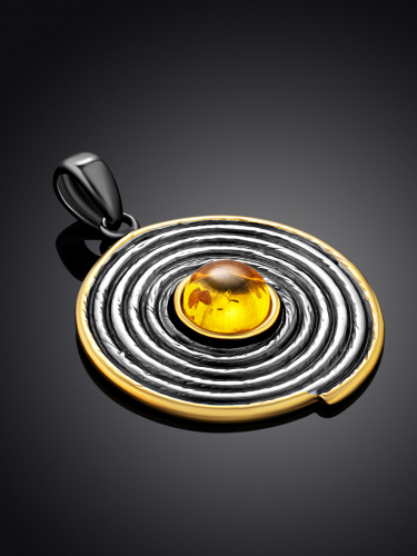 Оригинальный круглый кулон «Лагос» с золотистым янтарём