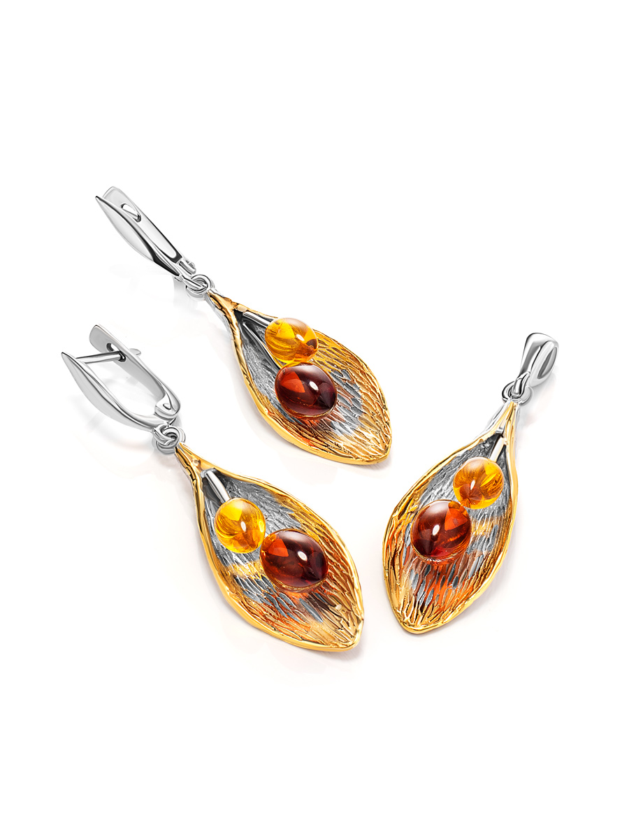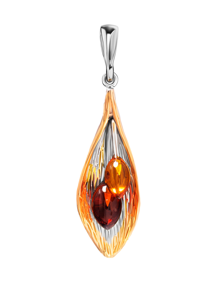 Оригинальный удлинённый кулон с янтарными вставками «Калла»