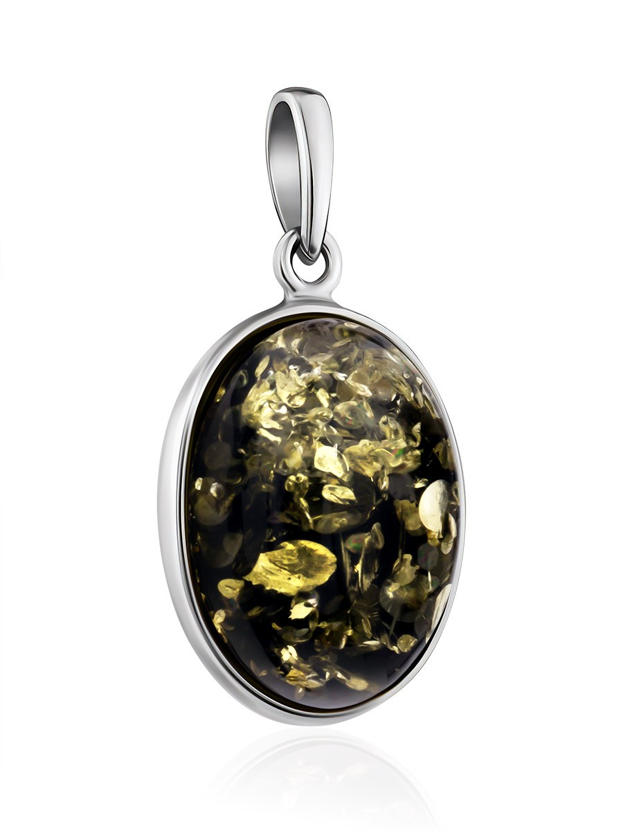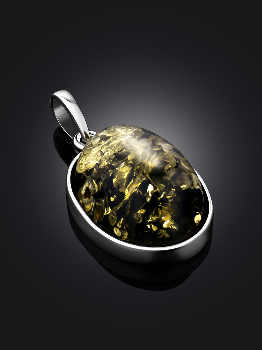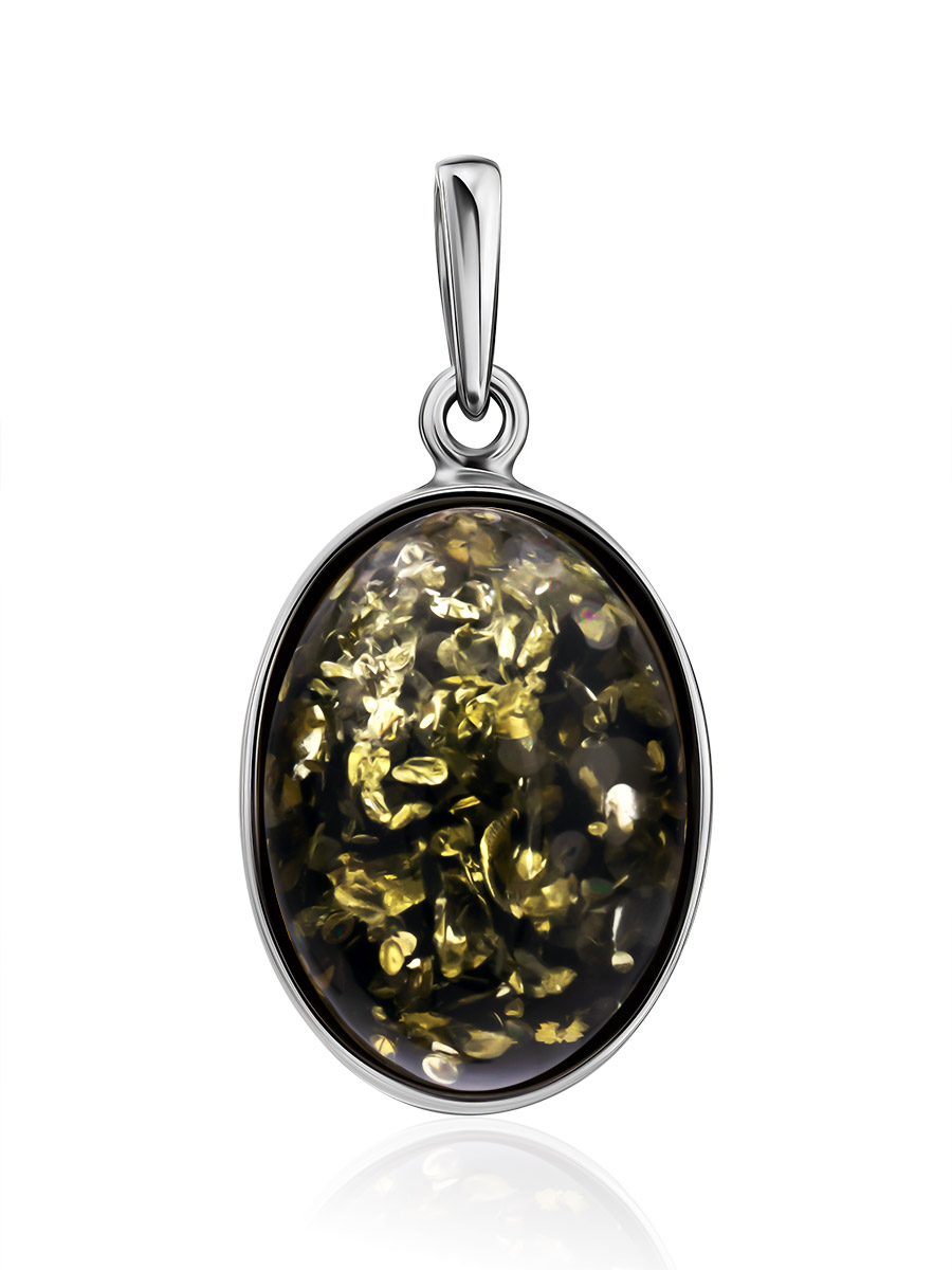 Овальная подвеска с искрящимся янтарём зелёного цвета «Годжи крупная»
