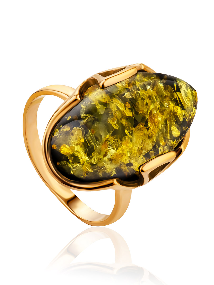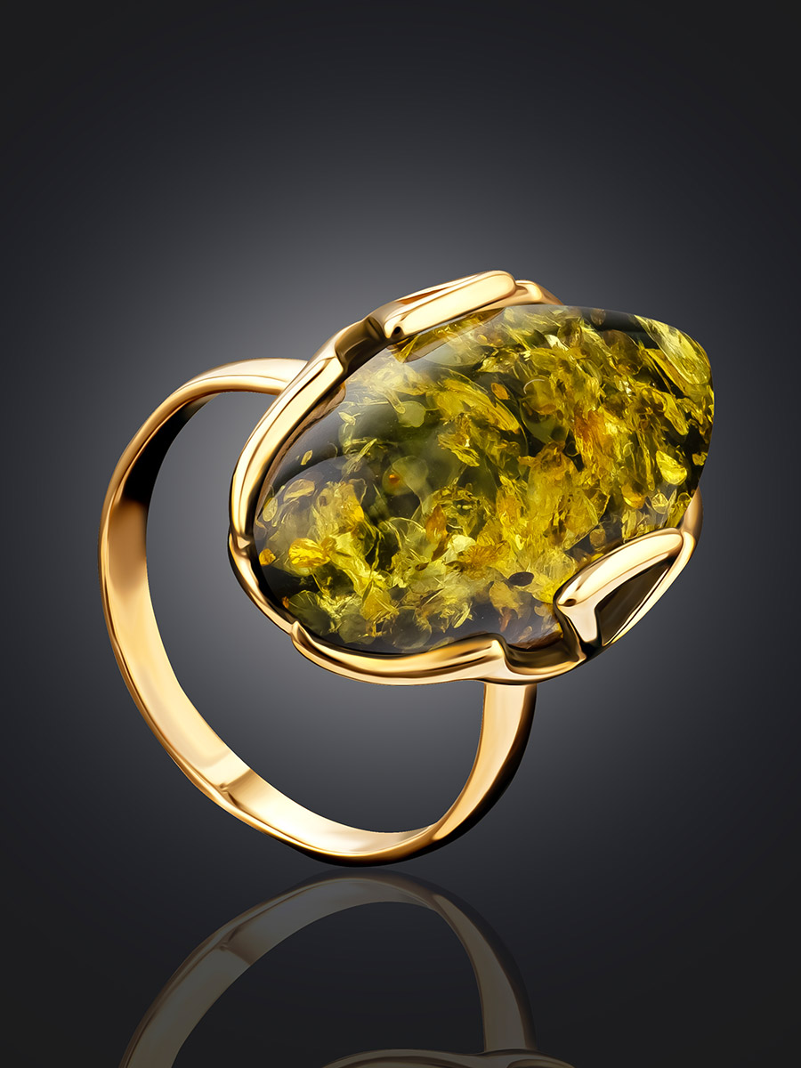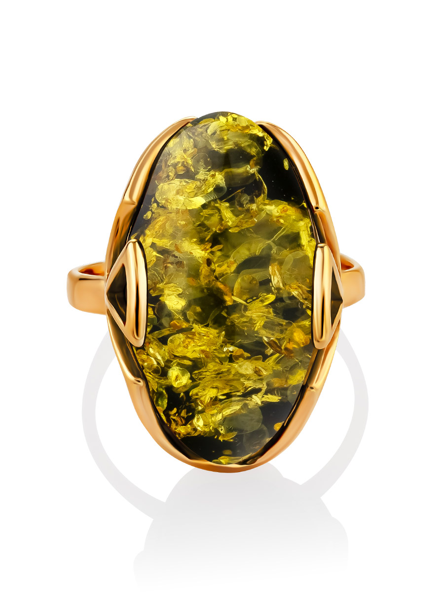 Овальное кольцо с натуральным янтарём зелёного цвета «Рандеву»