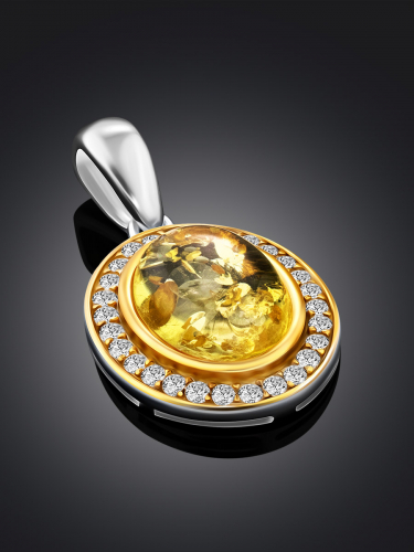 Овальный кулон «Ренессанс» с лимонным янтарём и фианитами