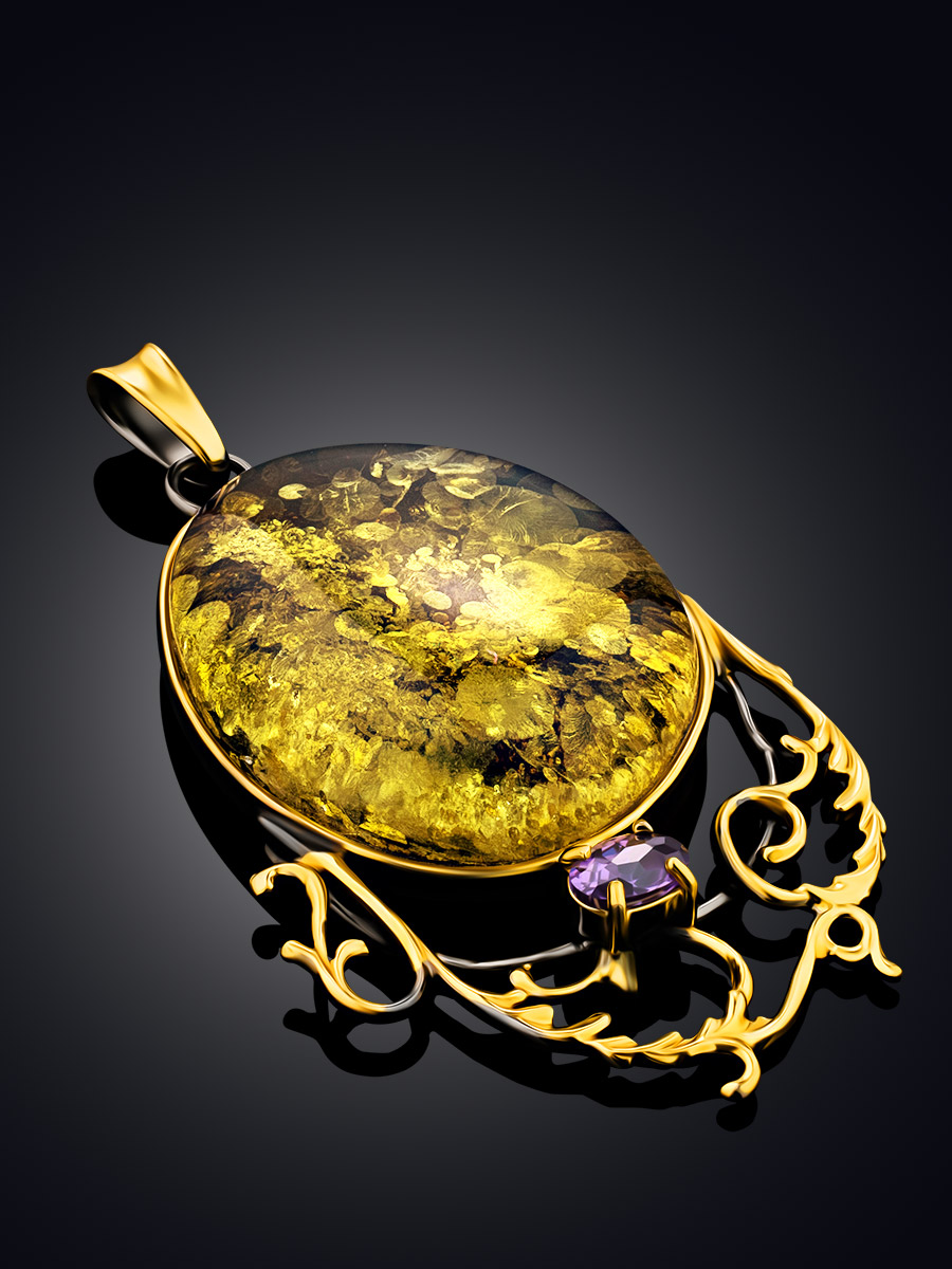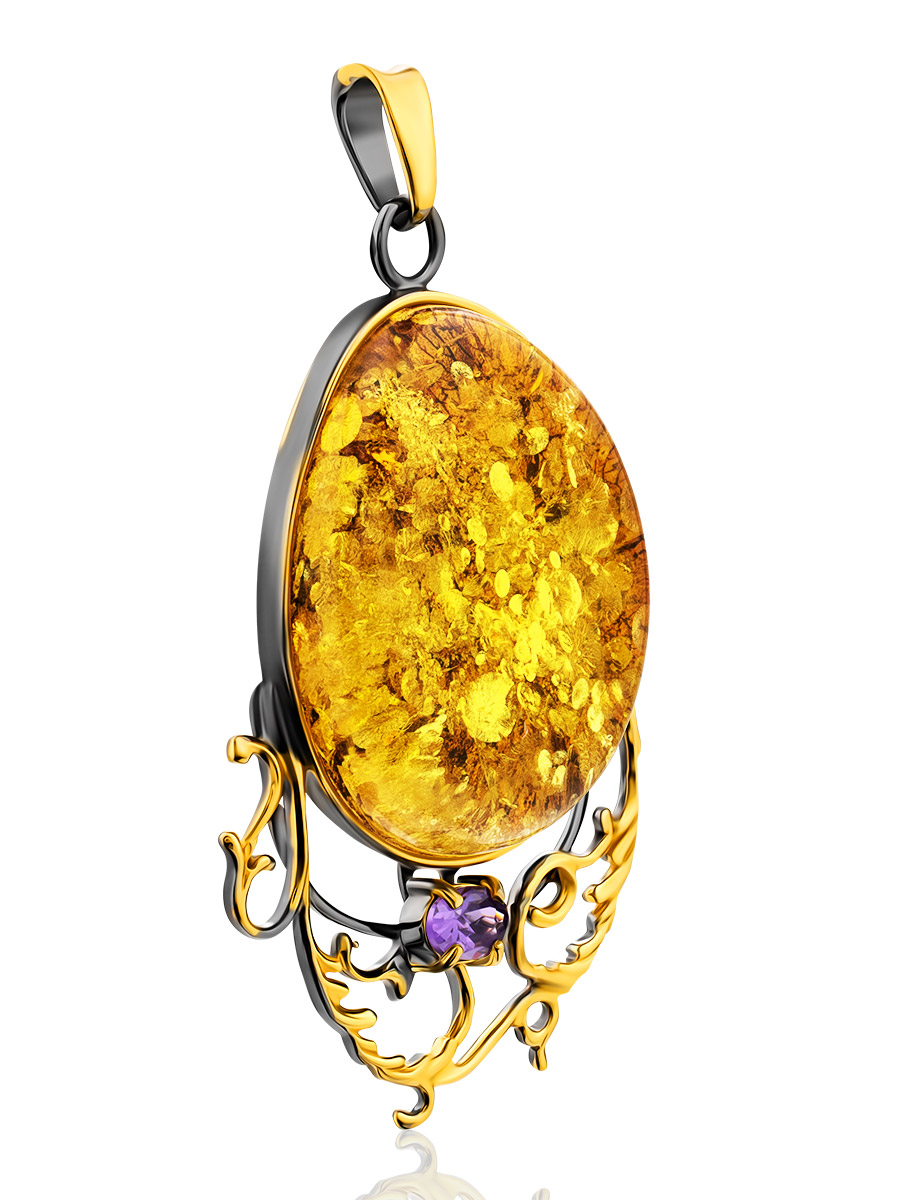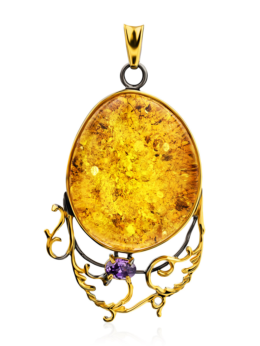 Овальный кулон «Версаль» из натурального цельного янтаря с красивой текстурой
