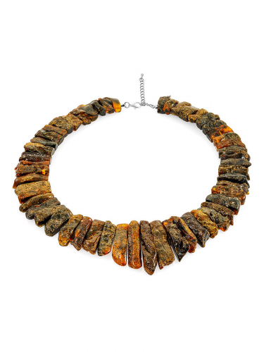 Ожерелье из кожи «Амазонка» с коньячным янтарём