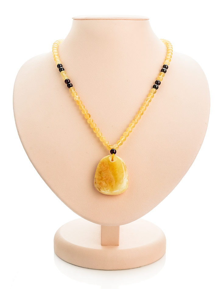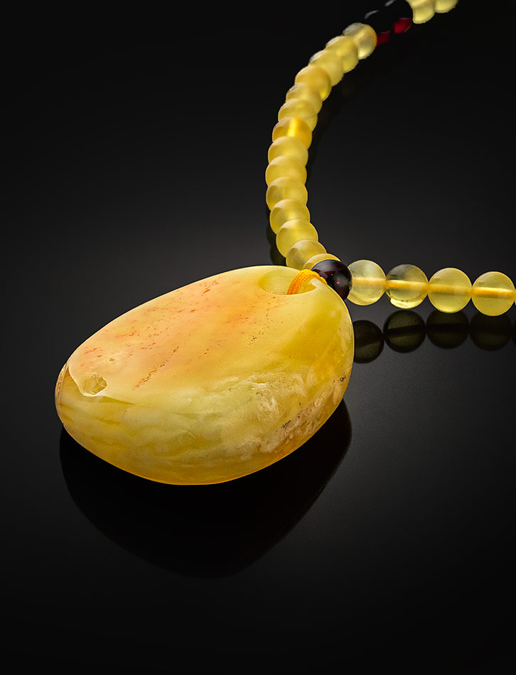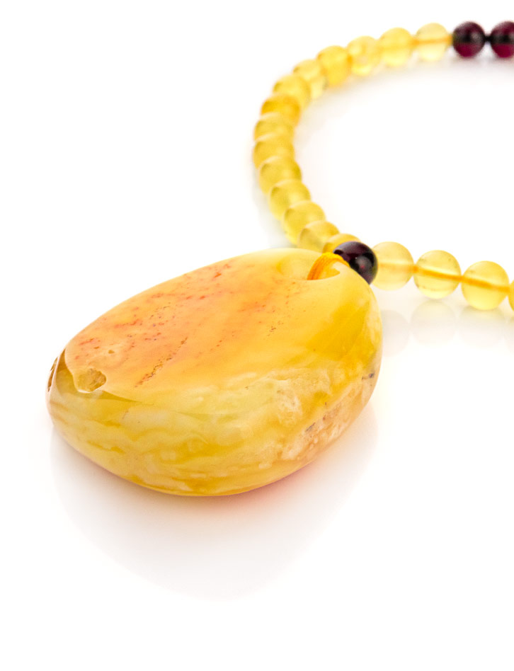 Ожерелье с подвеской из цельного медового янтаря «Лаура»