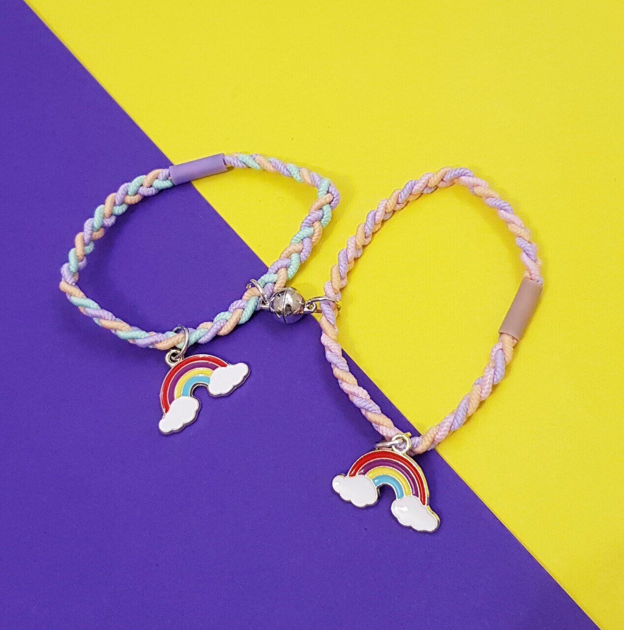 Описание Парные браслеты с магнитами или браслеты неразлучники - символ любви, дружбы и глубокой симпатии. Представлены в нескольких вариантах с разными подвесками. Состав текстиль, пластик, металл. Вес 11 гр.