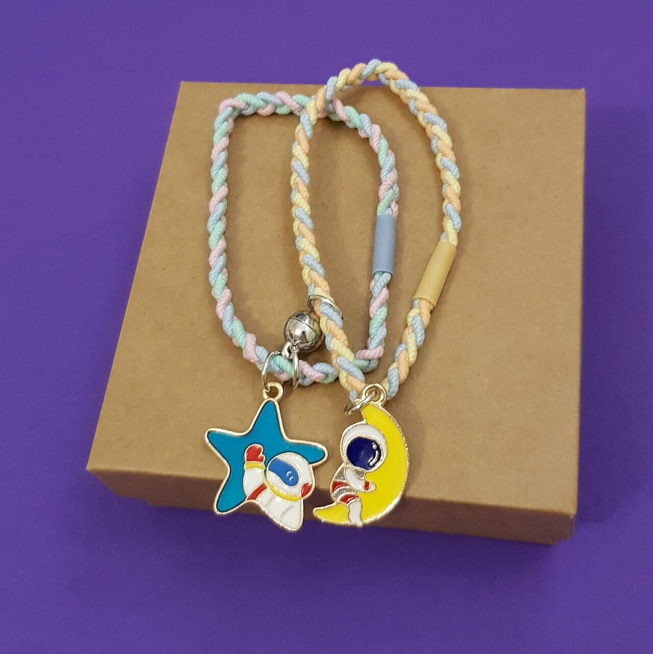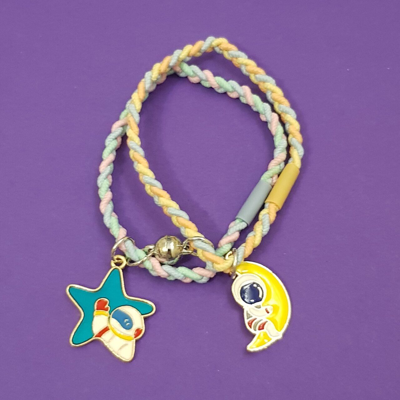 Описание Парные браслеты с магнитами или браслеты неразлучники - символ любви, дружбы и глубокой симпатии. Представлены в нескольких вариантах с разными подвесками. Состав текстиль, пластик, металл. Вес 11 гр.