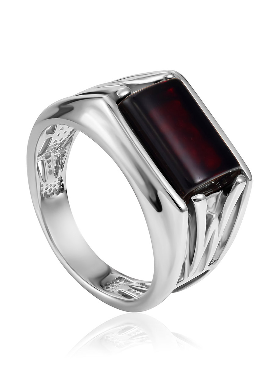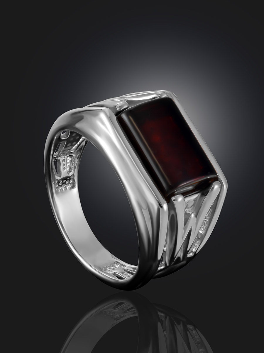 Перстень «Цезарь» с натуральным янтарем коньячного цвета