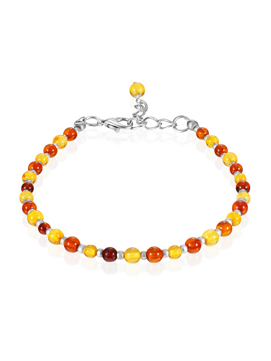 Пёстрый браслет из натурального балтийского янтаря разных оттенков «Карамель»
