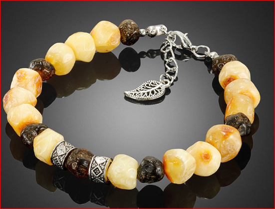 Пёстрый браслет из натурального янтаря с декоративными элементами