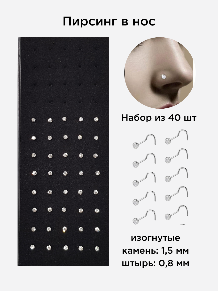 Пирсинг в нос, набор 40 шт, размер и замок на фото, LY-7, Уценка, арт.08.1291