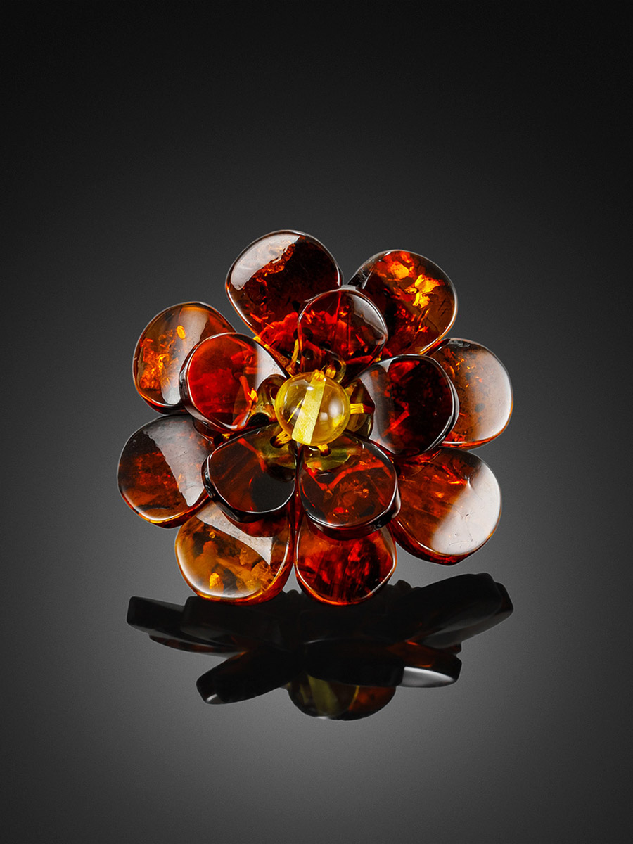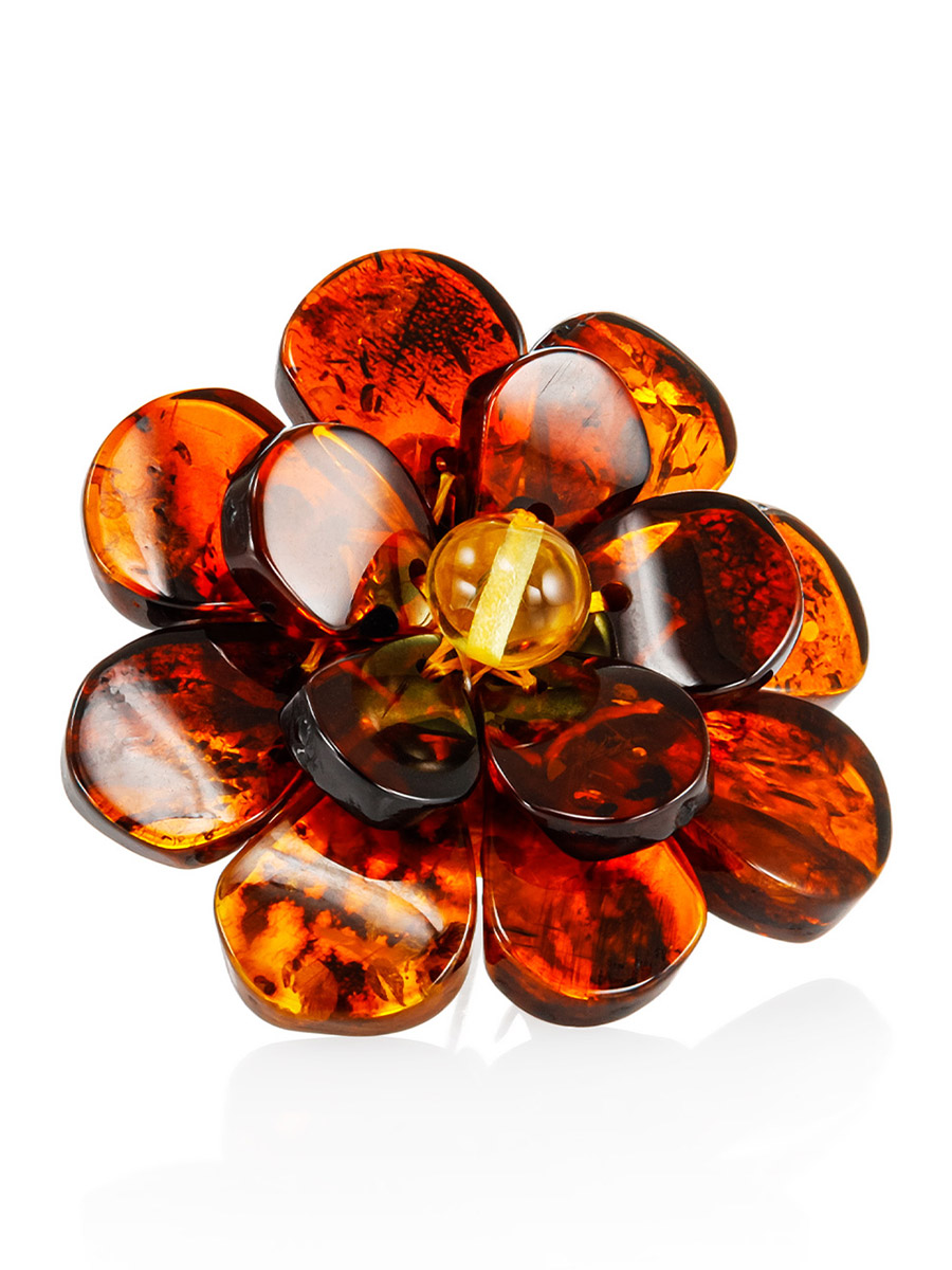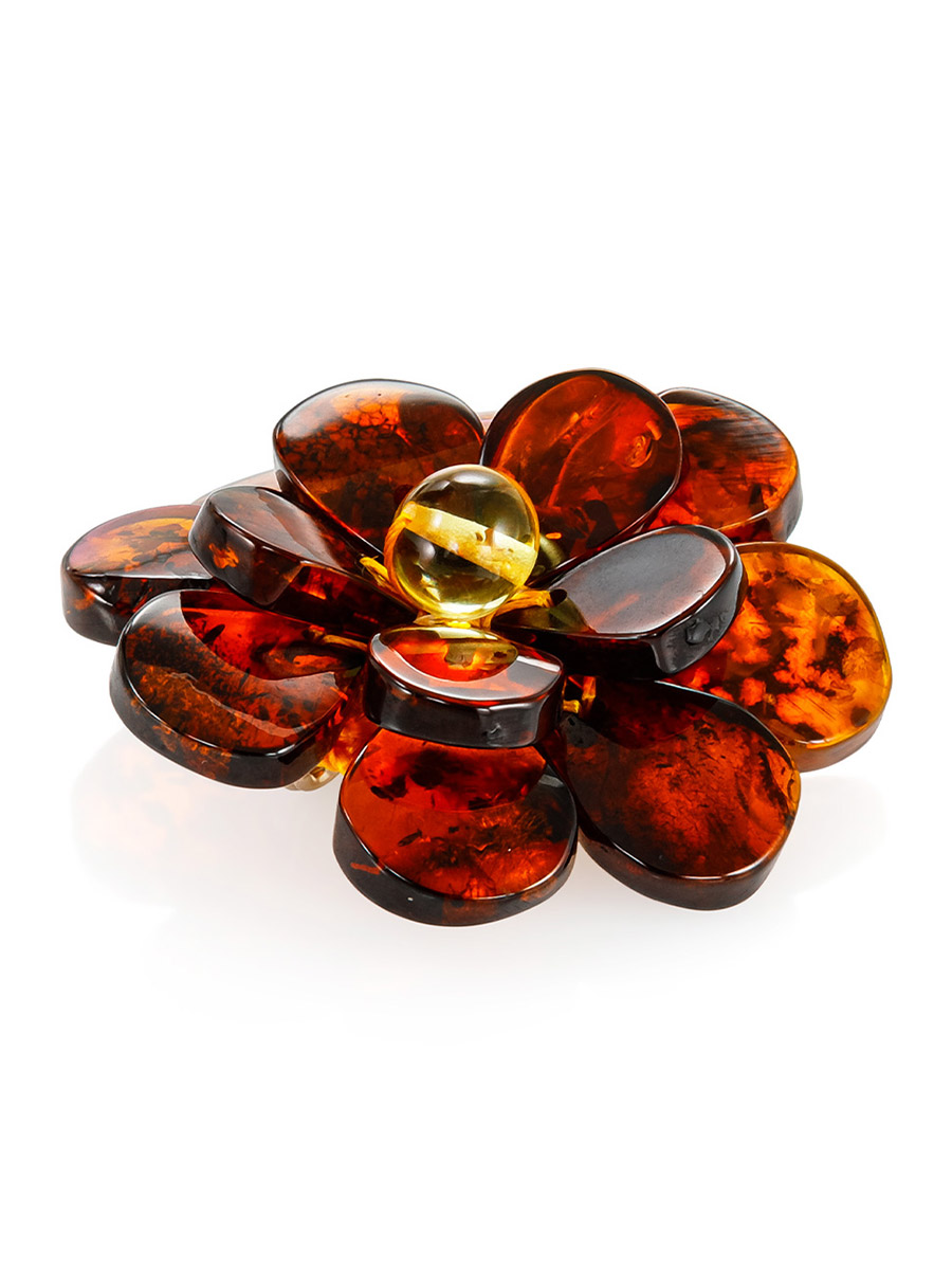 Плетёная брошь из натурального балтийского янтаря «Хризантема»