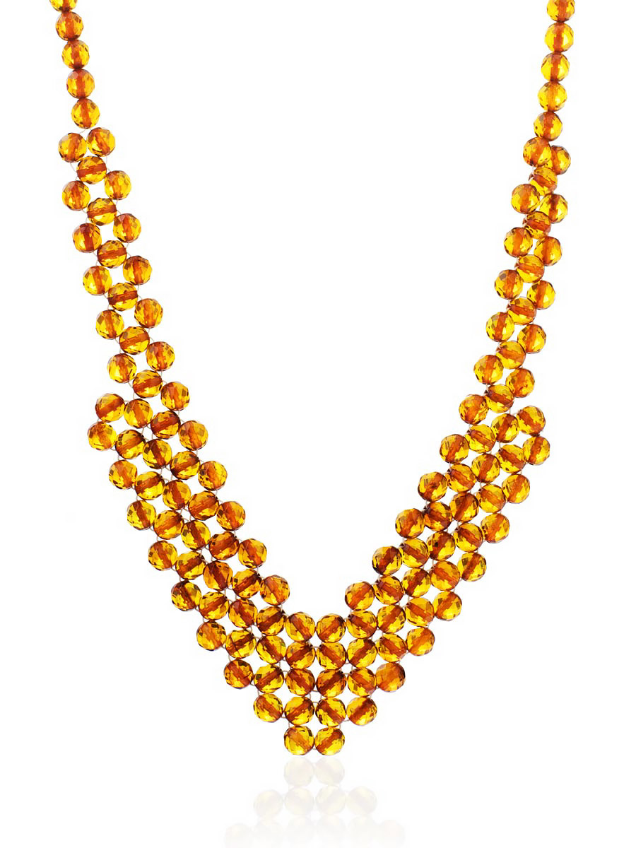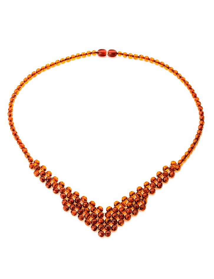 Плетёное колье из натурального коньячного янтаря «Карамель коньячная. Алмазная грань»