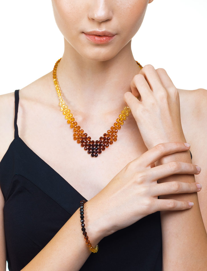 Плетёное колье «Карамель градиентная. Алмазная грань»