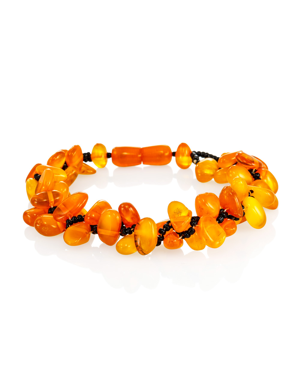 Плетёный браслет из натурального балтийского янтаря «Лукоморье»