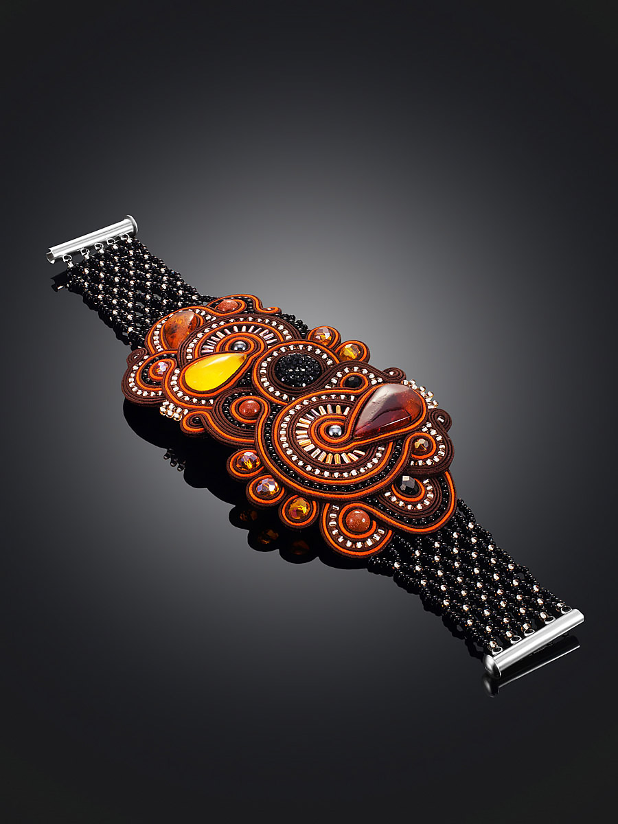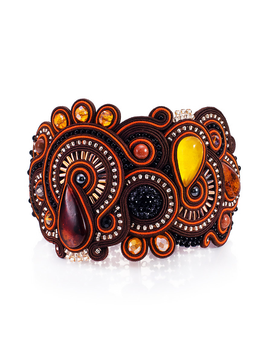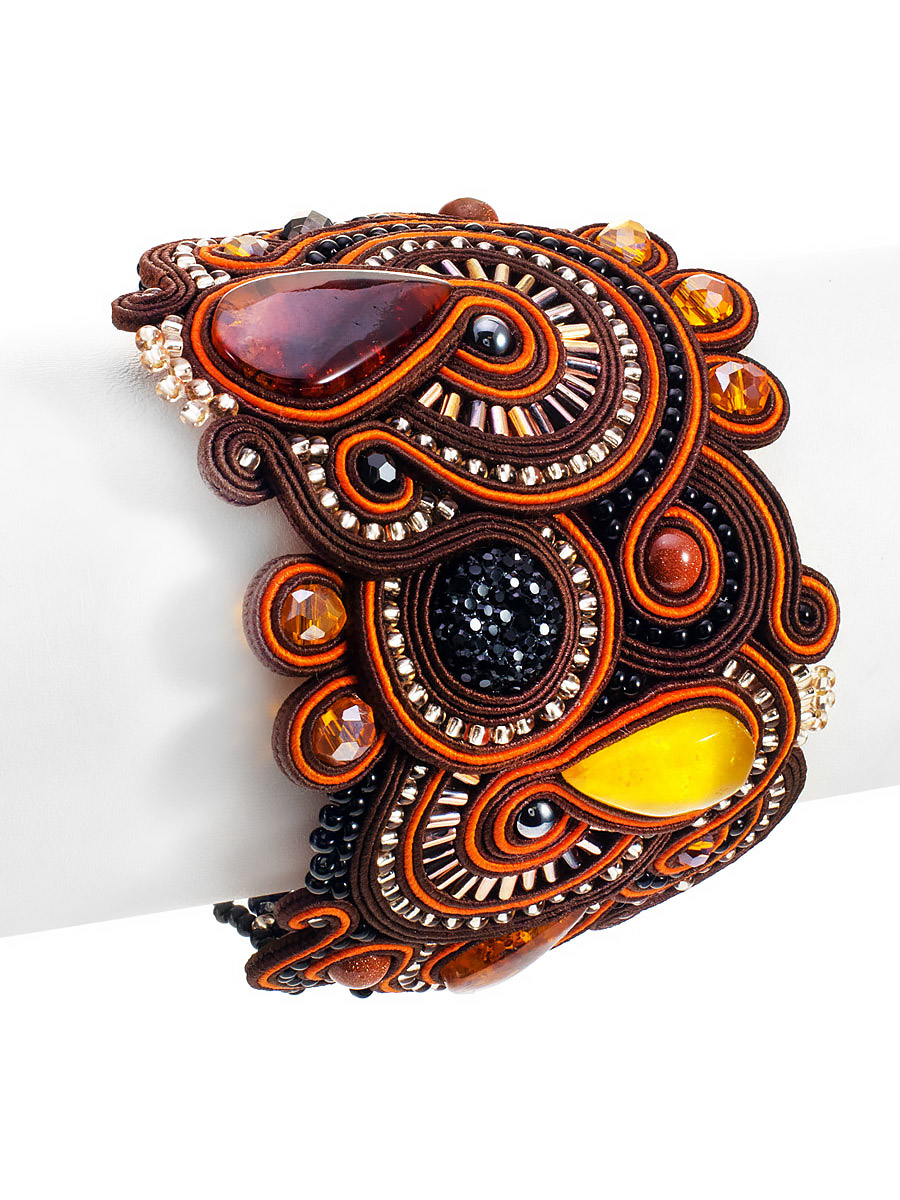 Плетеный браслет с вставками из натурального коньячного янтаря и кристаллов «Индия»