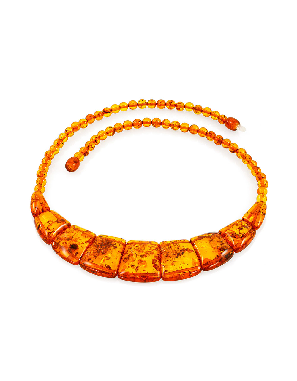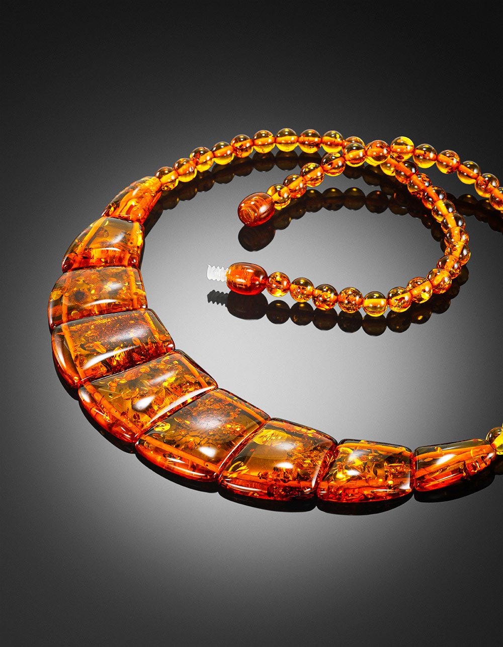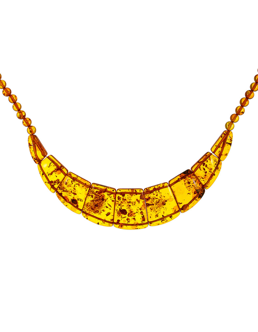 Плоское колье из натурального искрящегося янтаря чайного оттенка