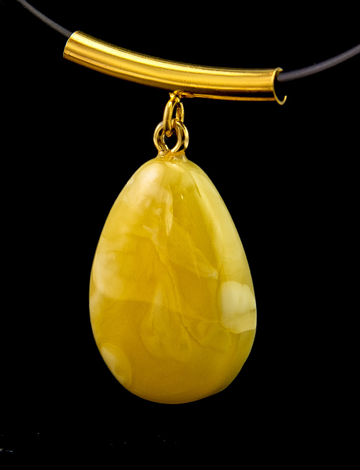 Подвеска каплевидной формы из натурального балтийского янтаря с молочной текстурой «Эльза»