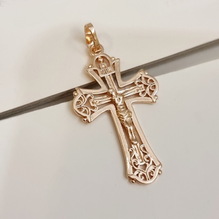 Подвеска на шею крест крупный ювелирная бижутерия Дубайское золото, с покрытием позолотой 18К, арт.215.163
