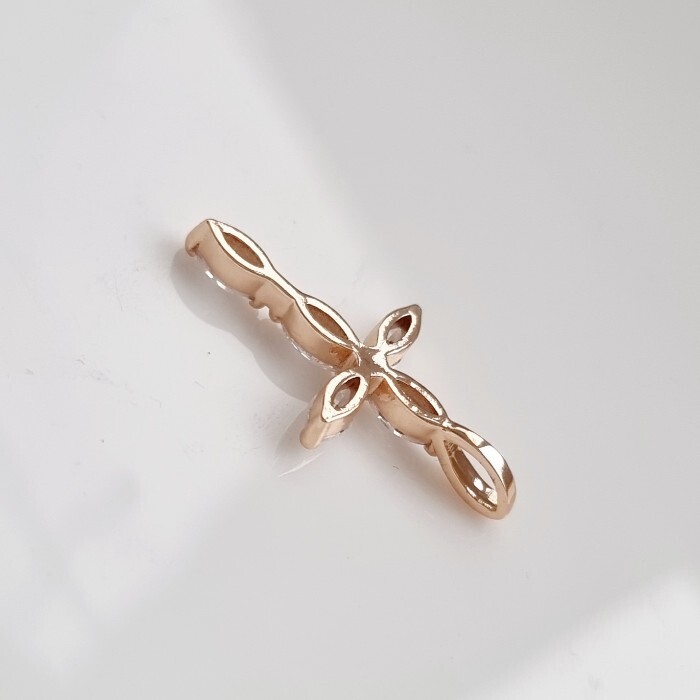 Подвеска на шею крест ювелирная бижутерия Дубайское золото, с покрытием позолотой 18К, вставка: фианит, цвет: прозрачный, арт.215.156
