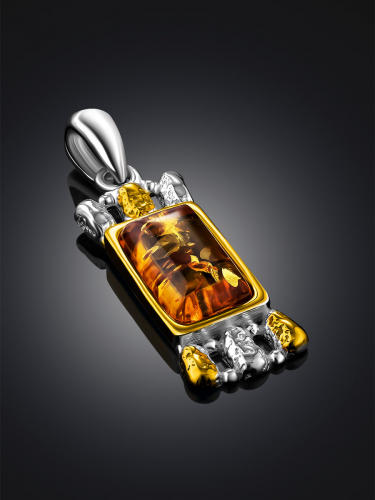 Подвеска с натуральным тёмно-коньячным янтарём «Штурвал»