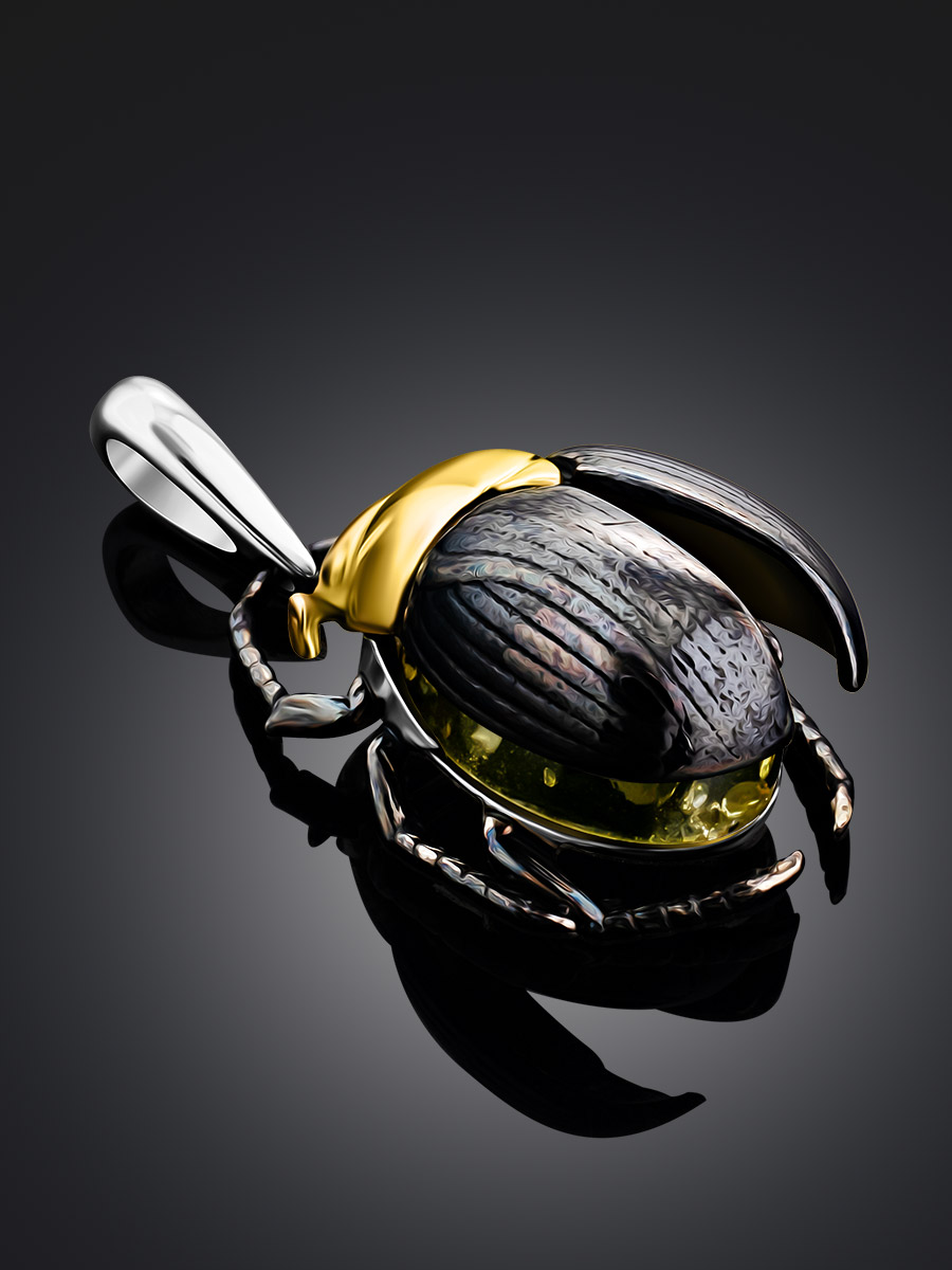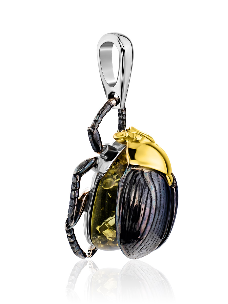 Подвеска «Скарабей» со вставкой из янтаря зелёного цвета