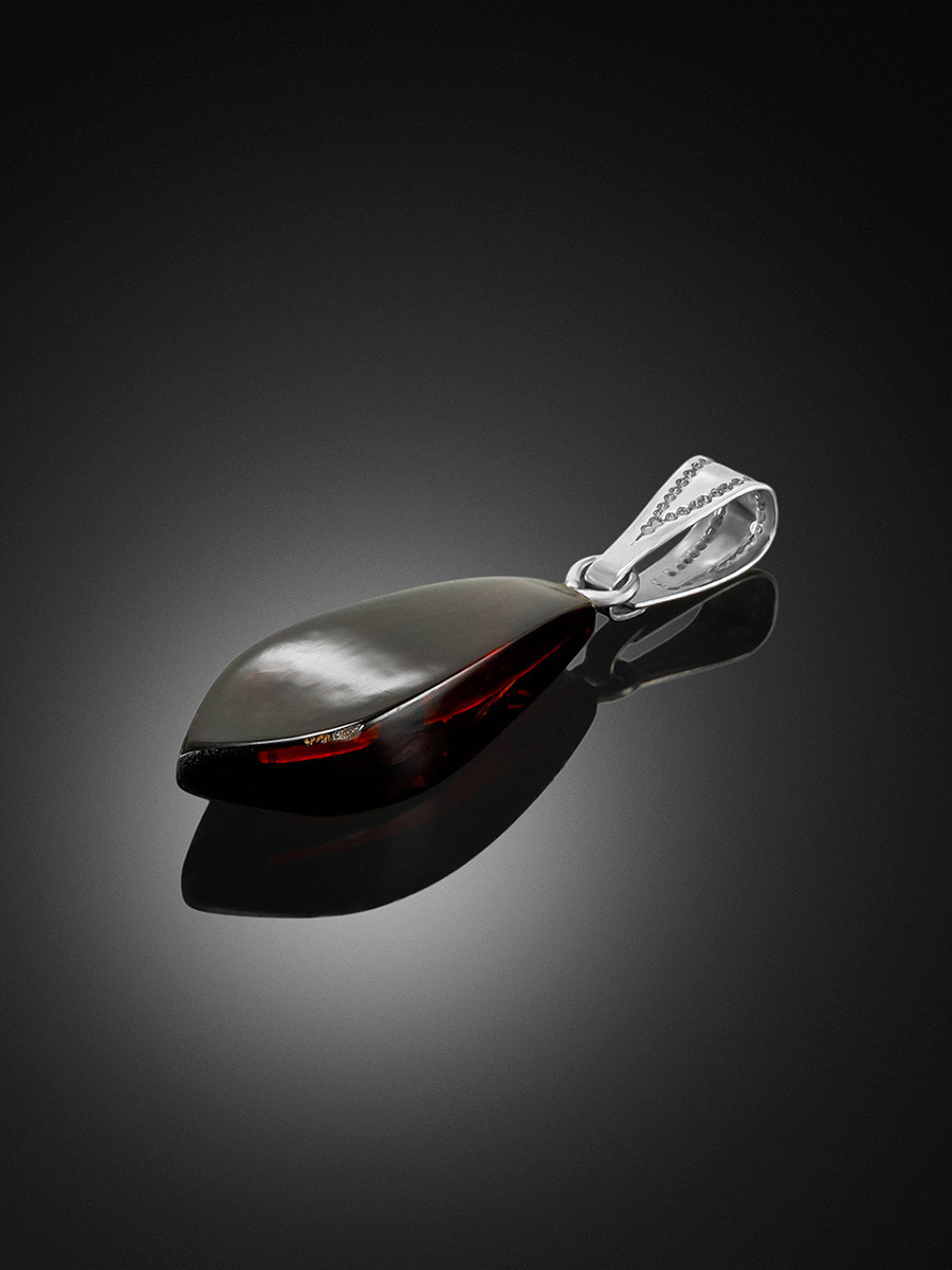 Подвеска в форме листочка из натурального балтийского янтаря вишнёвого цвета