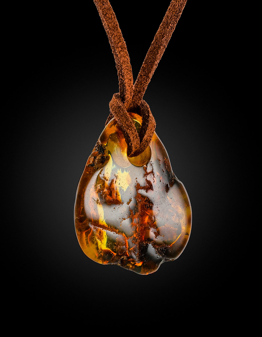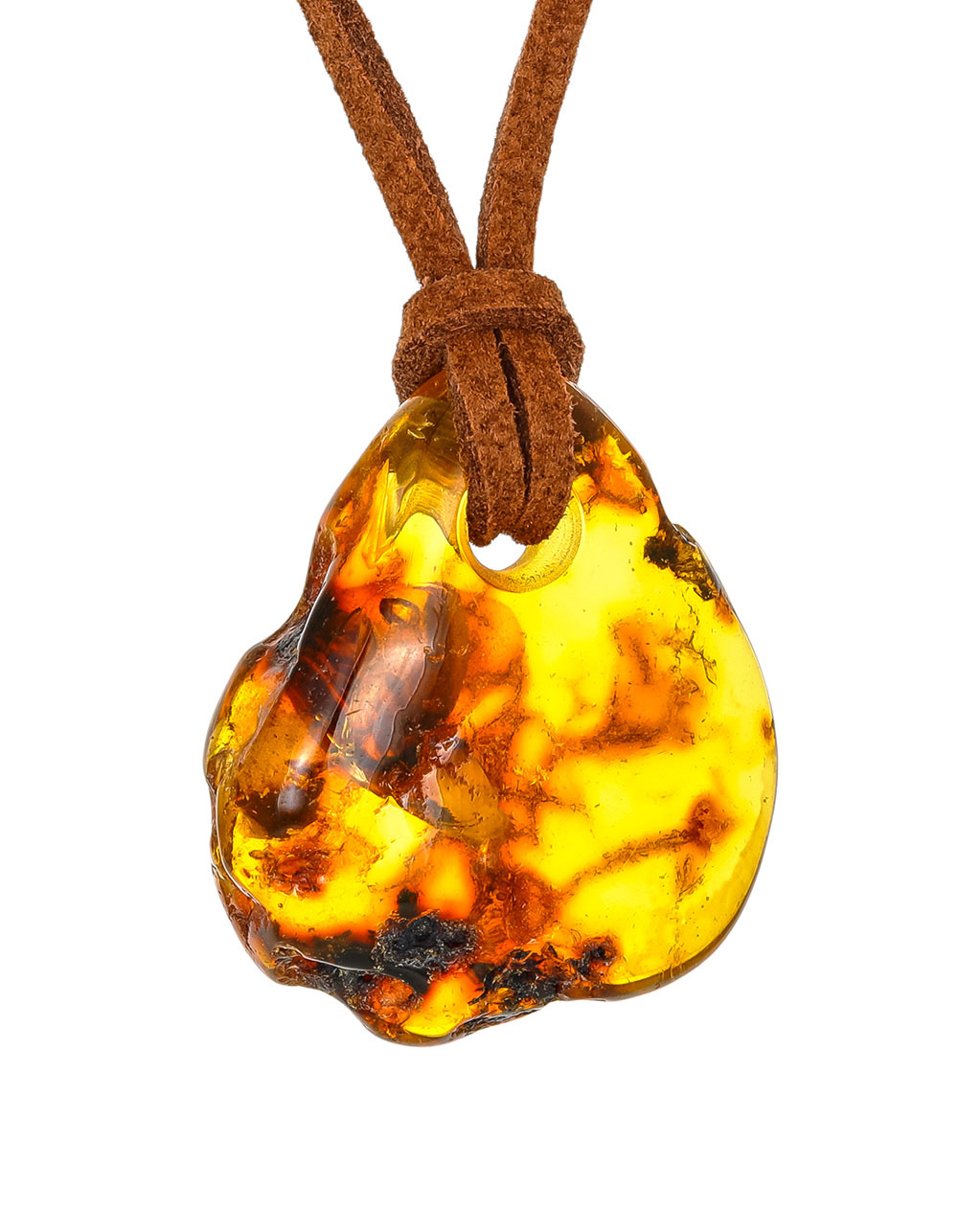 Подвеска в природной формы из натурального текстурного янтаря на шнурке