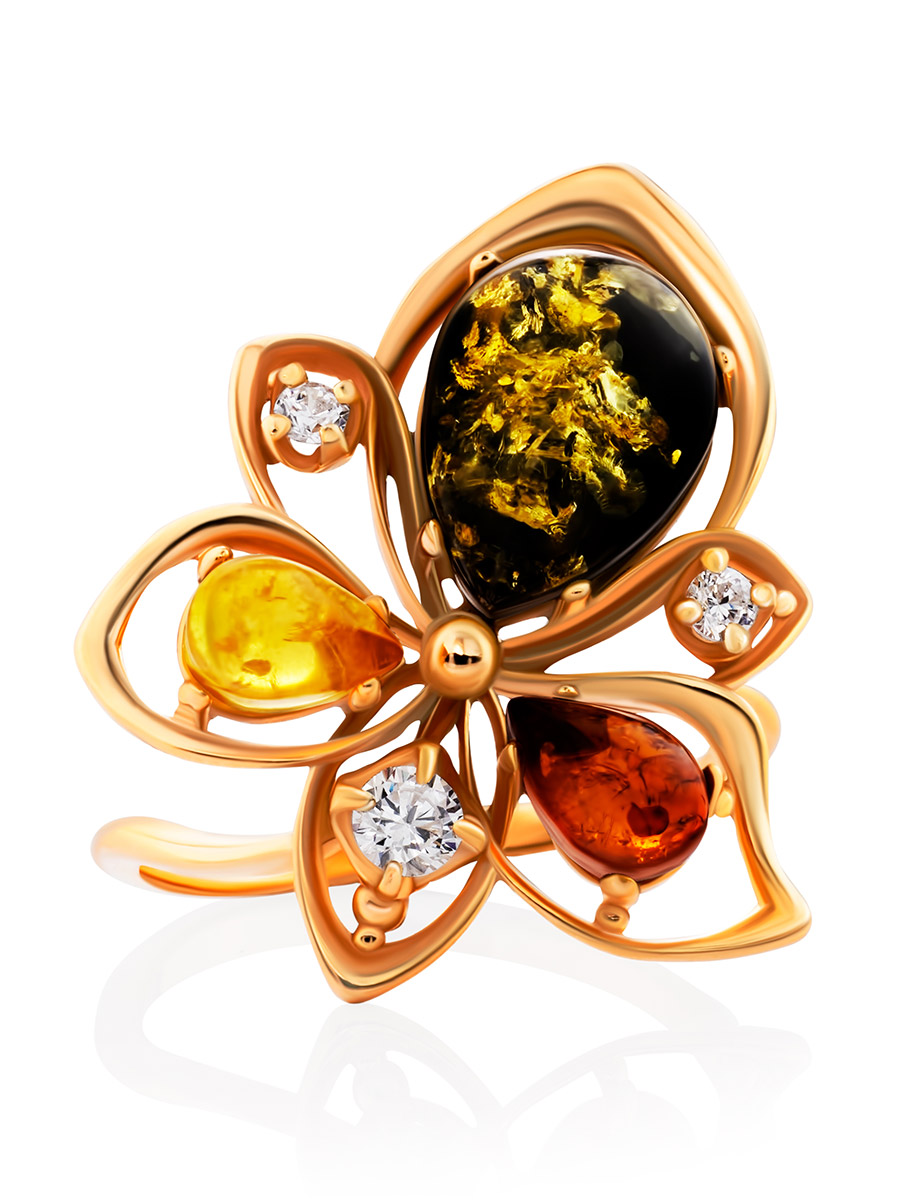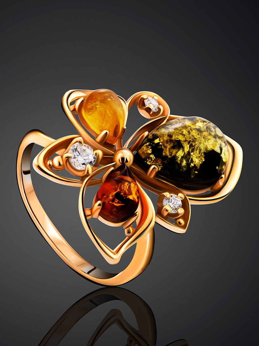 Потрясающее яркое кольцо из янтаря «Эдельвейс»