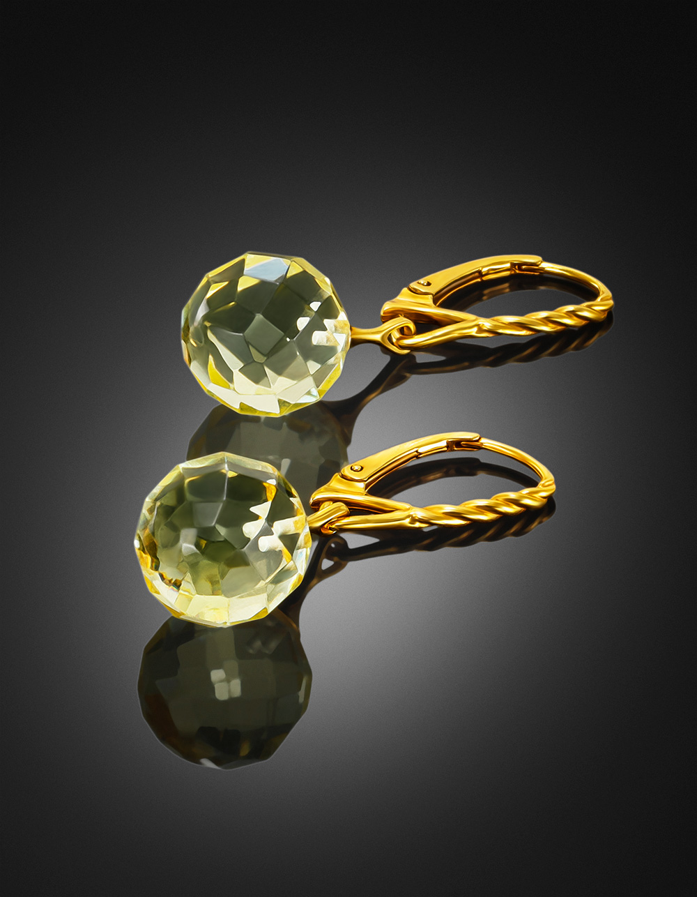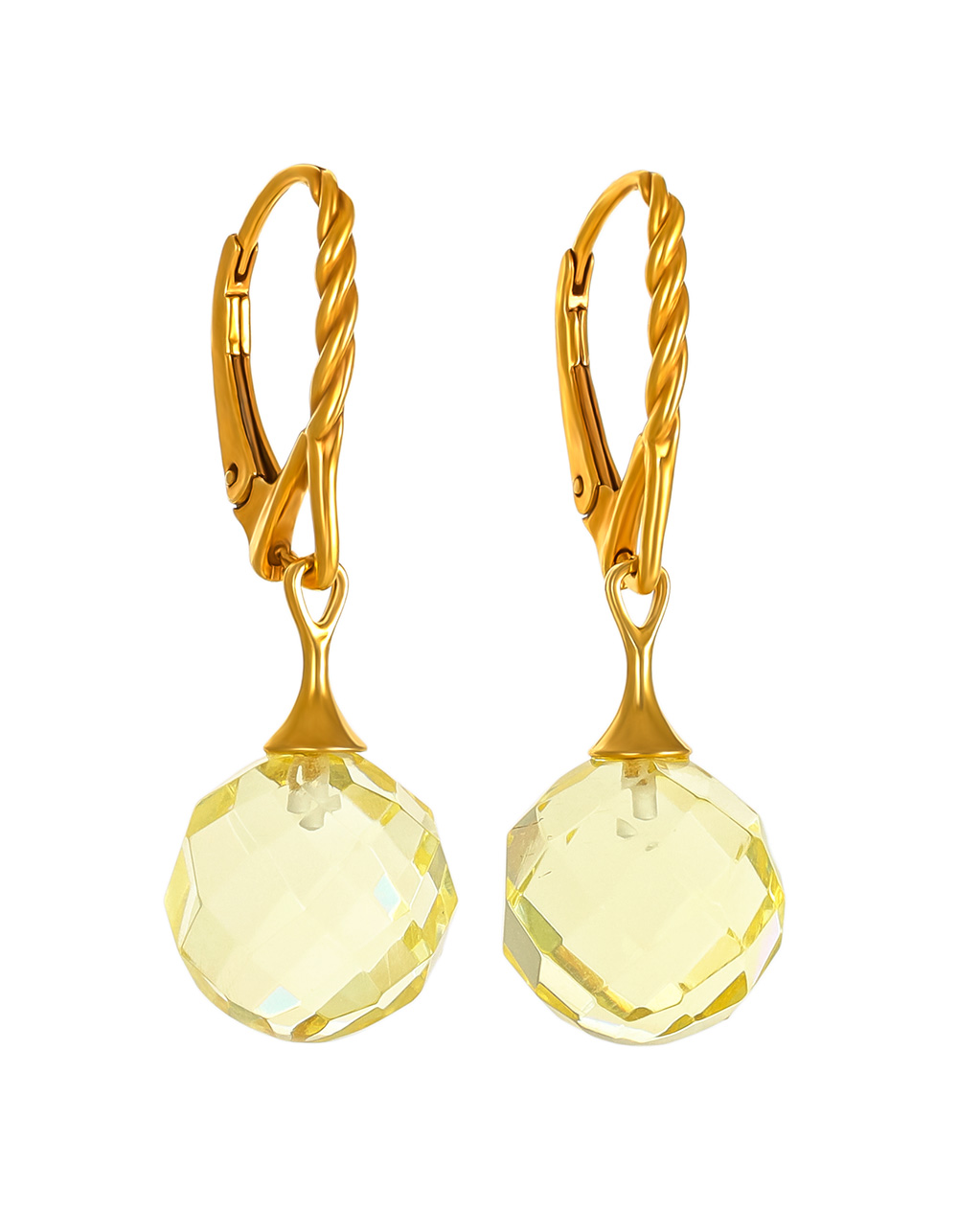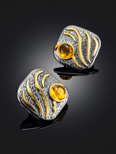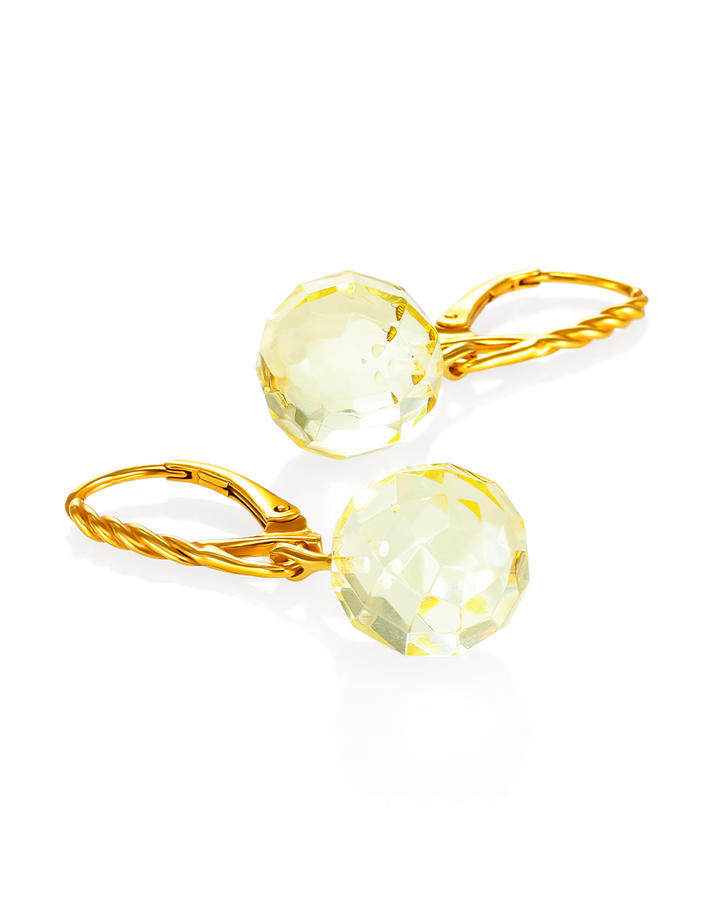 Позолоченные серьги-подвески с натуральным янтарём с алмазной огранкой «Баккара»