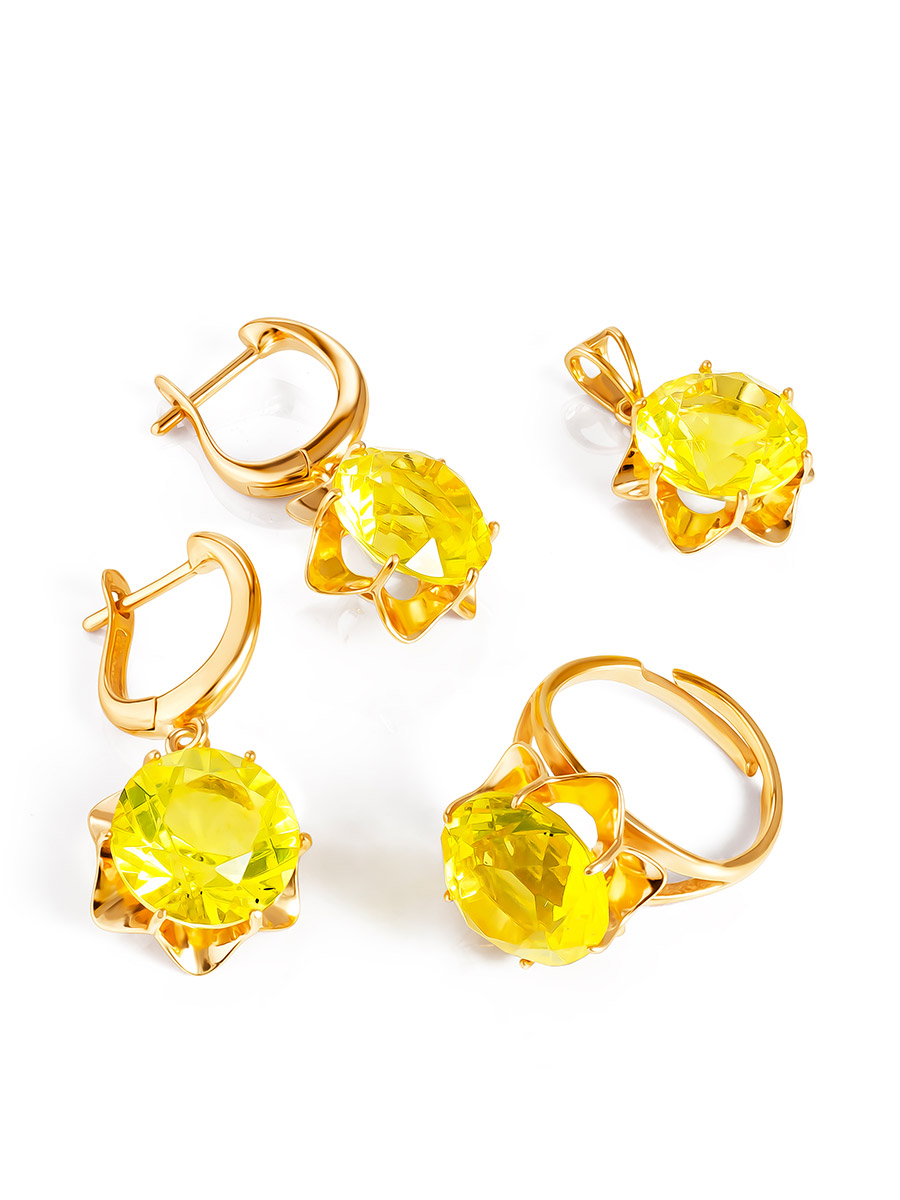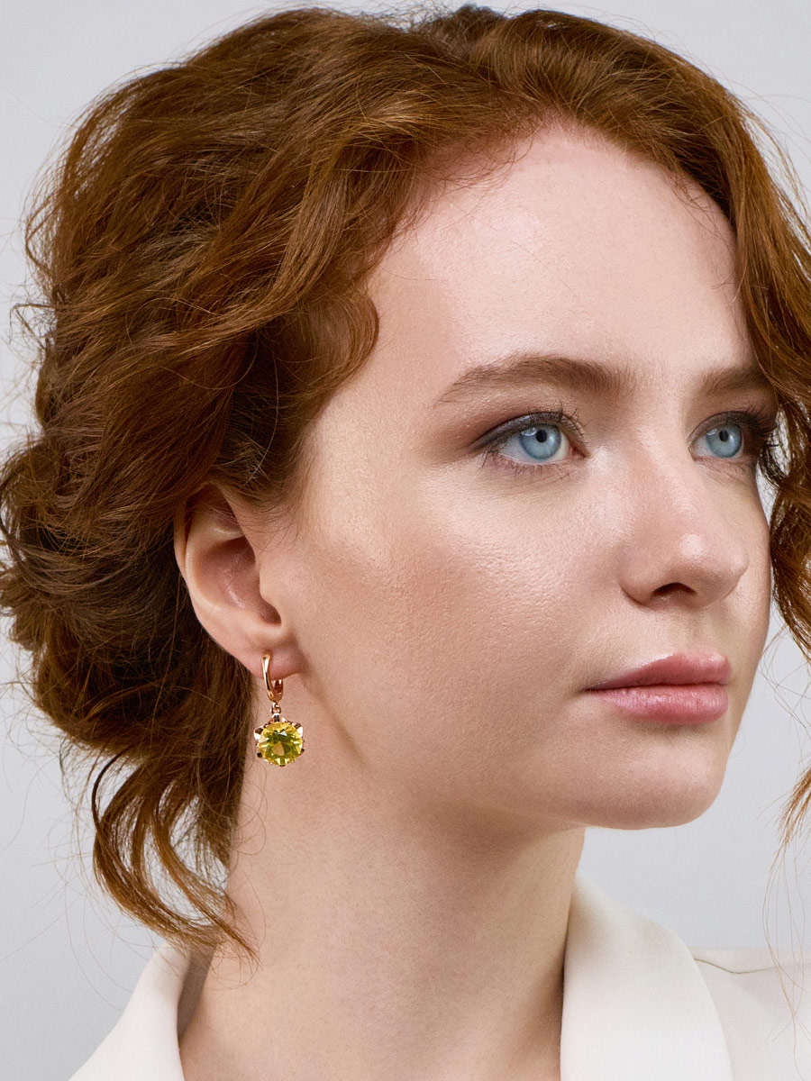 Позолоченные серьги-подвески с натуральным янтарём с ручной огранкой «Баккара»