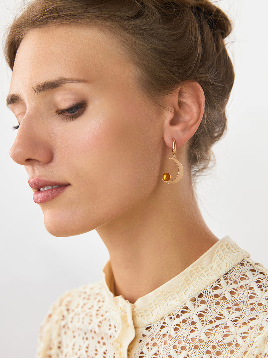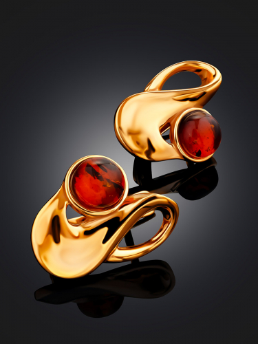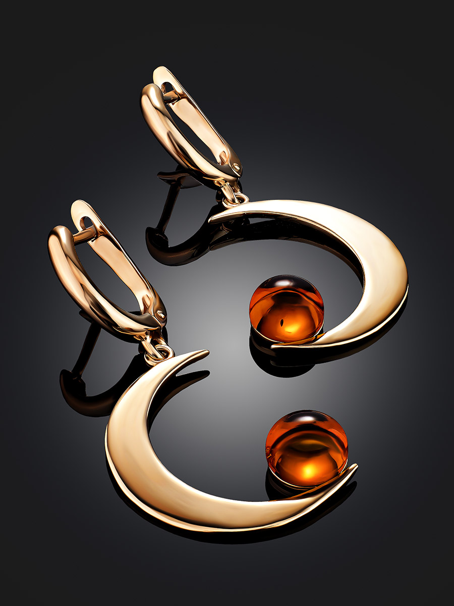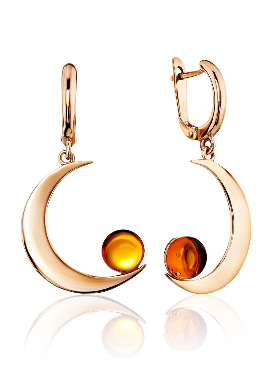 Позолоченные серьги-полумесяцы «Персия» с коньячным янтарём